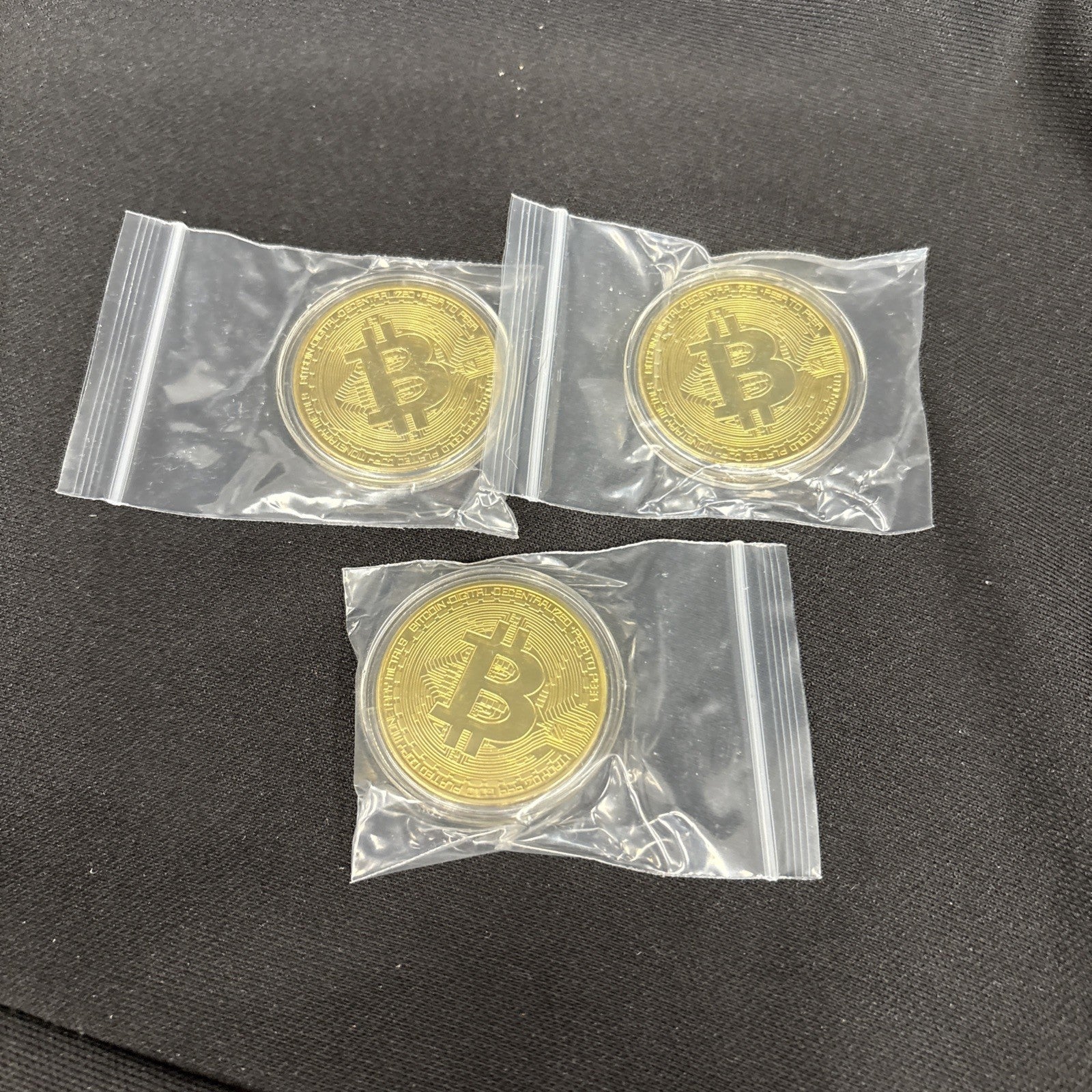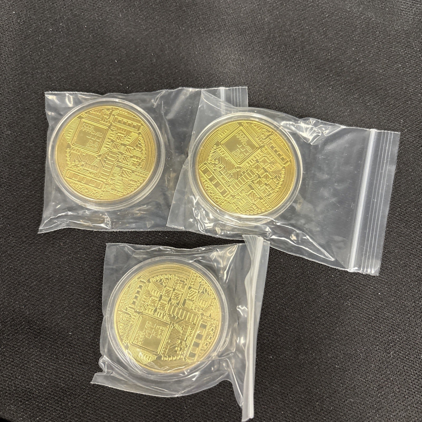 3 Bitcoin Coin Collectible Art Collection Gold Plated Physical Commemorative