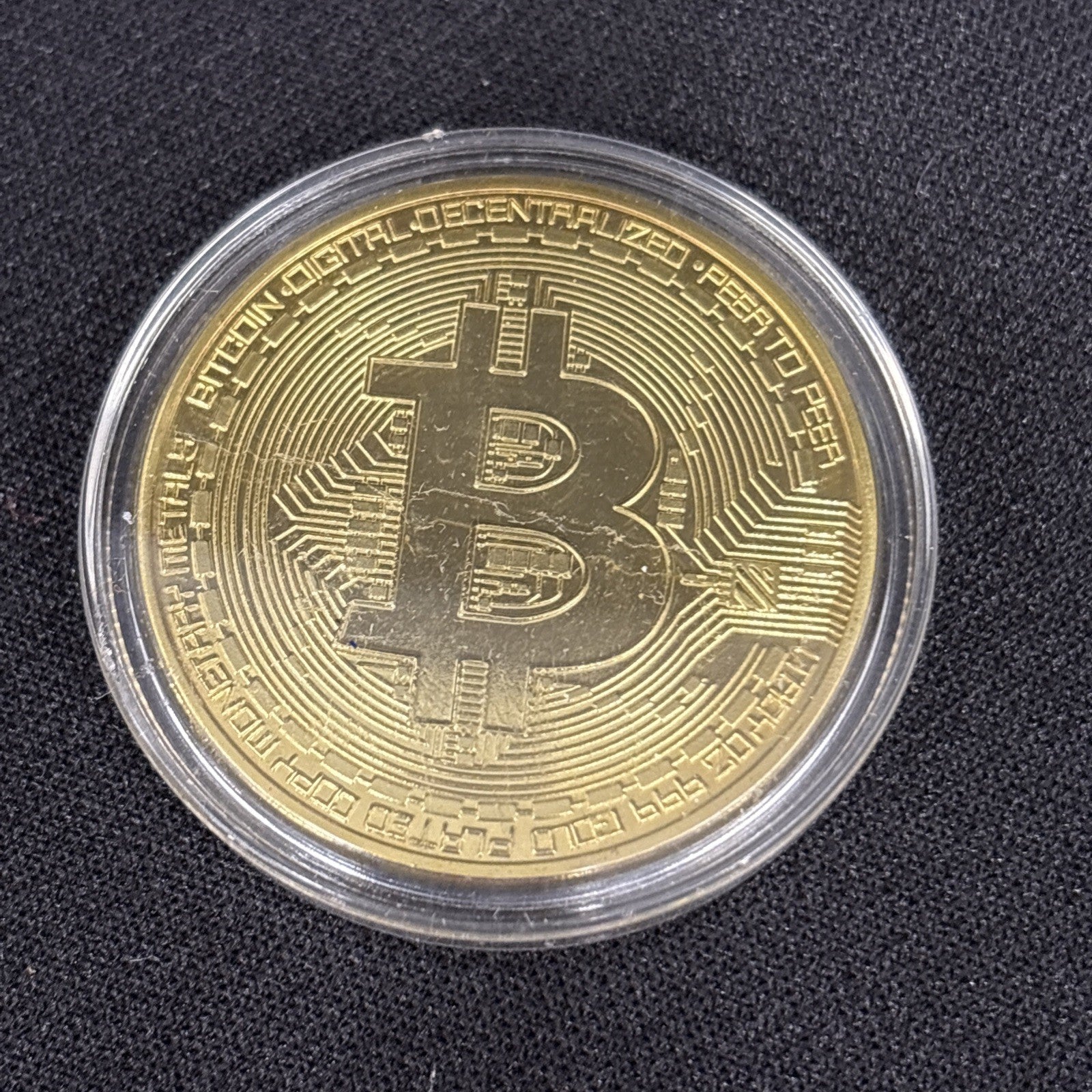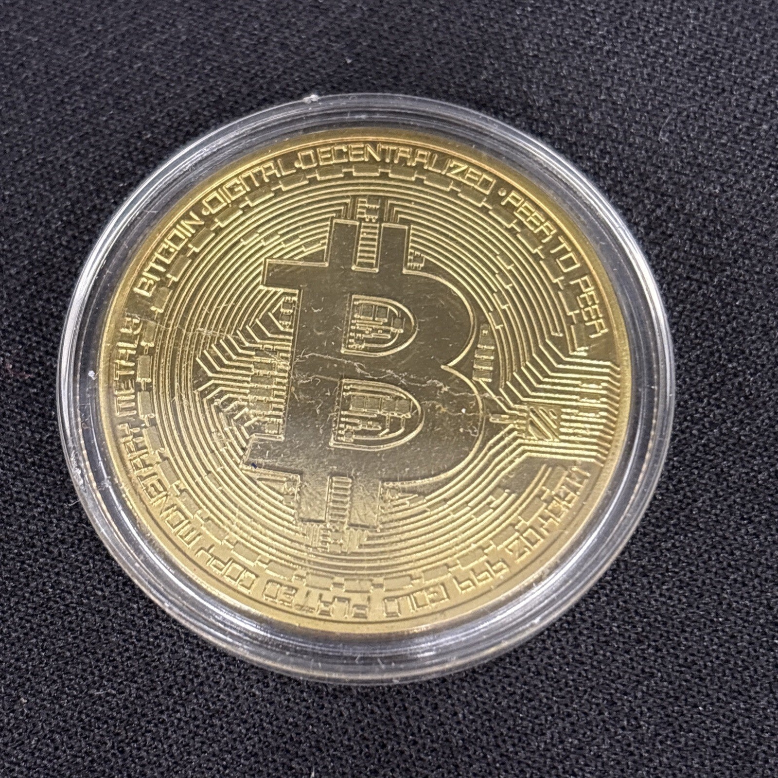 The product is a unique and highly sought-after 3x Bitcoin coin collectible art piece that has been gold plated for added value and collectible appeal. This physical commemorative coin is a standout piece for any art collection, combining the rarity and excitement of cryptocurrency with the timeless elegance of gold. Its distinctive design and limited availability make it a prized possession for collectors of metalware and cryptocurrency enthusiasts alike.