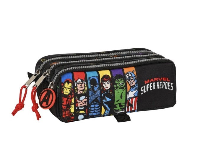 Avengers Super Heroes Triple Multi-Purpose Case Black (21.5 x 10 x 8 cm), Color: Black Design: For children Material: 300D Polyester Handle: Side Compartments: Front pocket Approx. dimensions: 21.5 x 10 x 8 cm Type: Triple multi-purpose case.