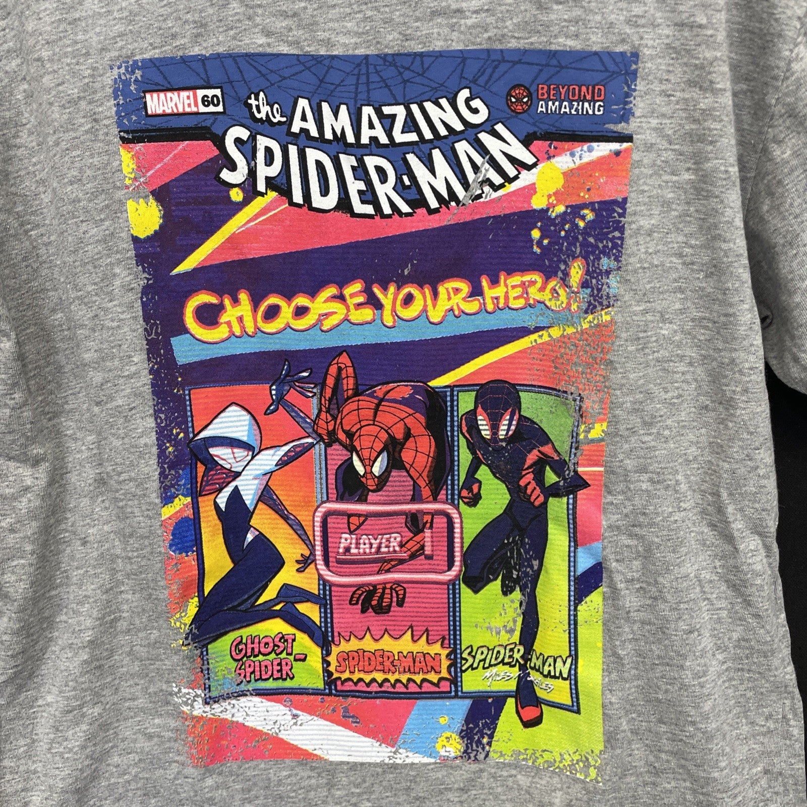 Amazing Spiderman "Choose Your Hero!" Gray Cotton Kids Graphic Size 18 Tshirt
