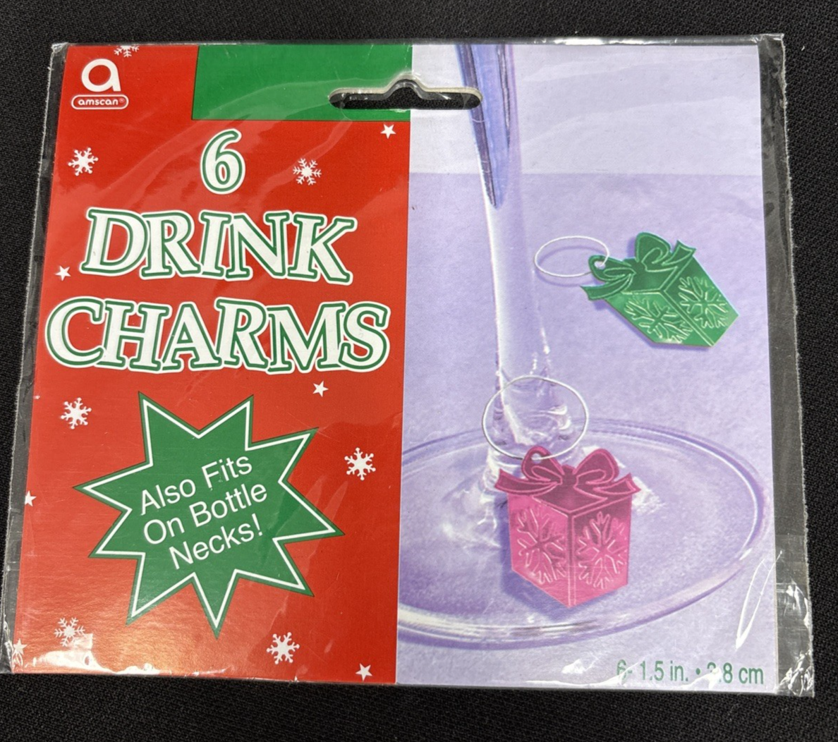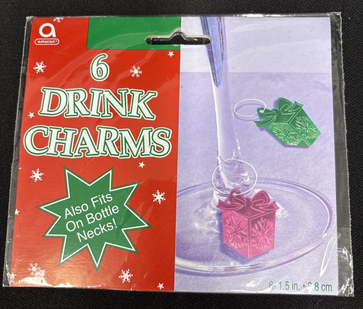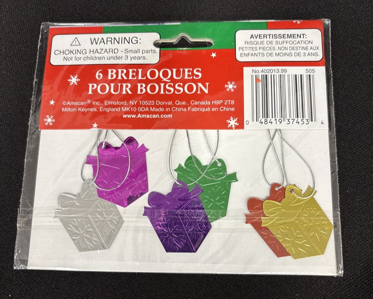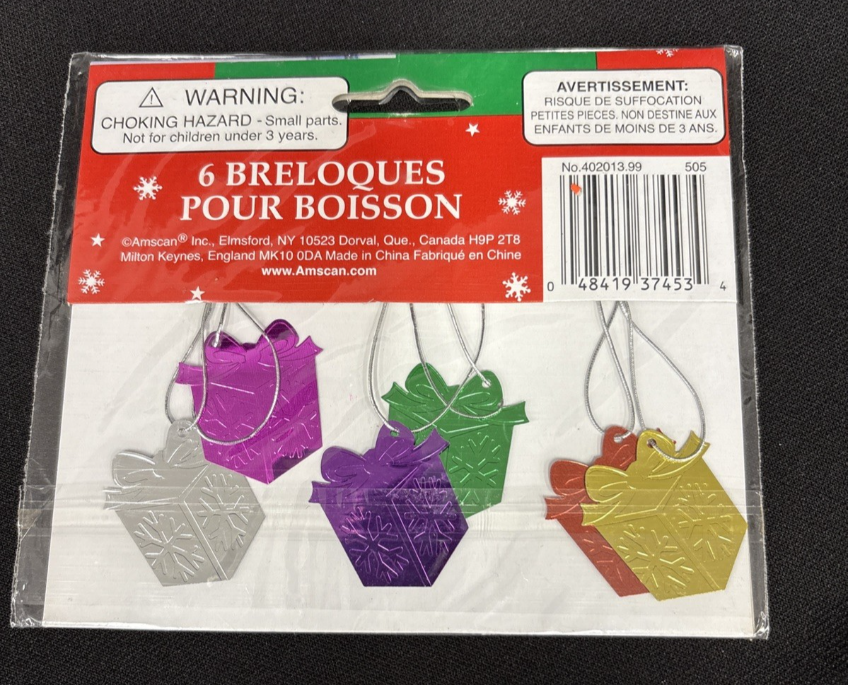 Amscan Holiday Present Foil Drink Charms for Glasses/Bottle Necks 6ct