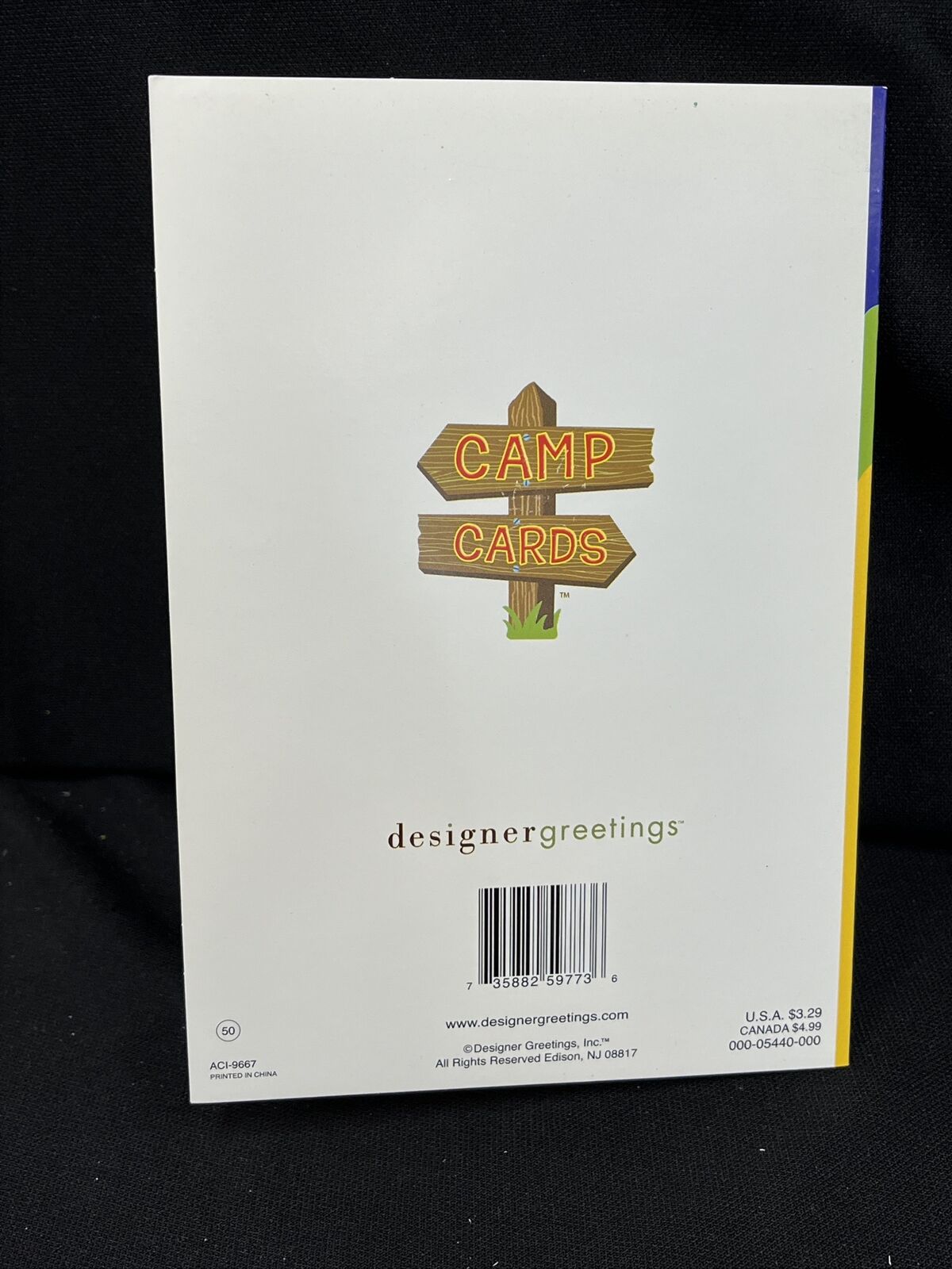 This Designer Greetings greeting card is the perfect way to send a cheerful message to someone who is away at camp. The card comes with an envelope for easy delivery. It's a great option for anyone looking to brighten up someone's day and let them know they're being thought of. The card is perfect for any occasion and will make a great addition to anyone's collection.