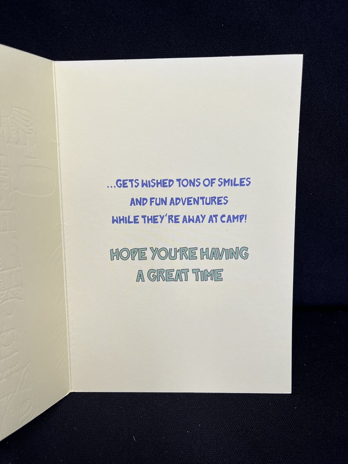 This Designer Greetings greeting card is perfect for any occasion. The card features a beautiful Away at Camp design and comes with an envelope included. It is ideal for anyone who loves camping or outdoor activities. It is also perfect for anyone who loves to send physical cards rather than digital ones. Get your hands on this beautiful card today and send it to your loved ones!