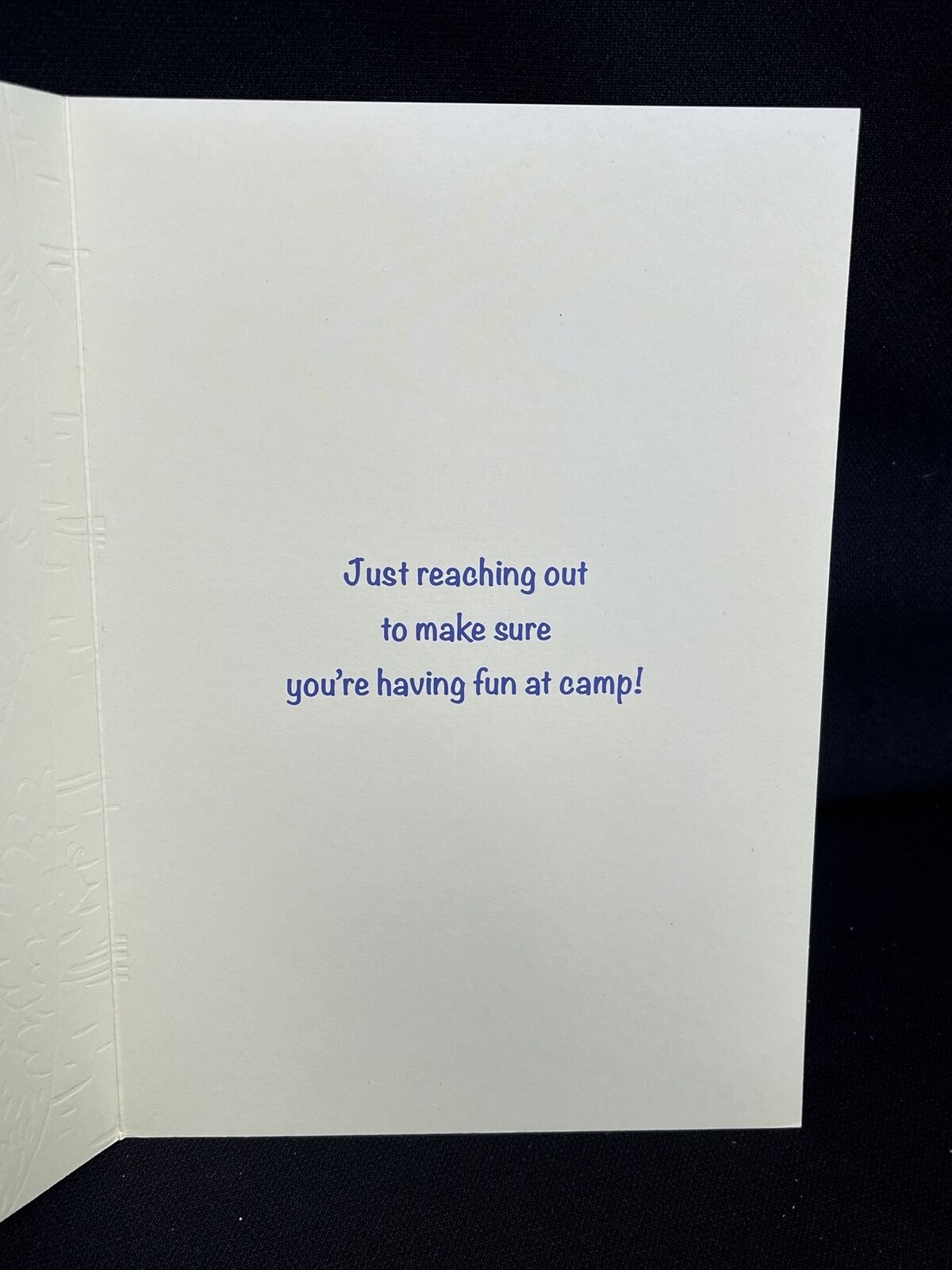 Featuring the Away at Camp design, this greeting card is ideal for anyone who loves camping or the great outdoors. The card comes with an envelope, making it easy to send to the recipient or to keep in a collection. Whether you're a seasoned camper or just looking for a unique way to say goodbye, this card is sure to impress.