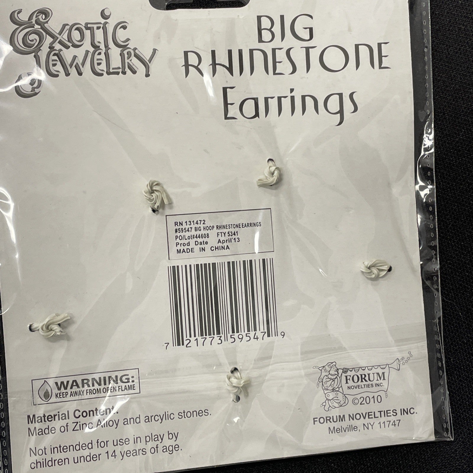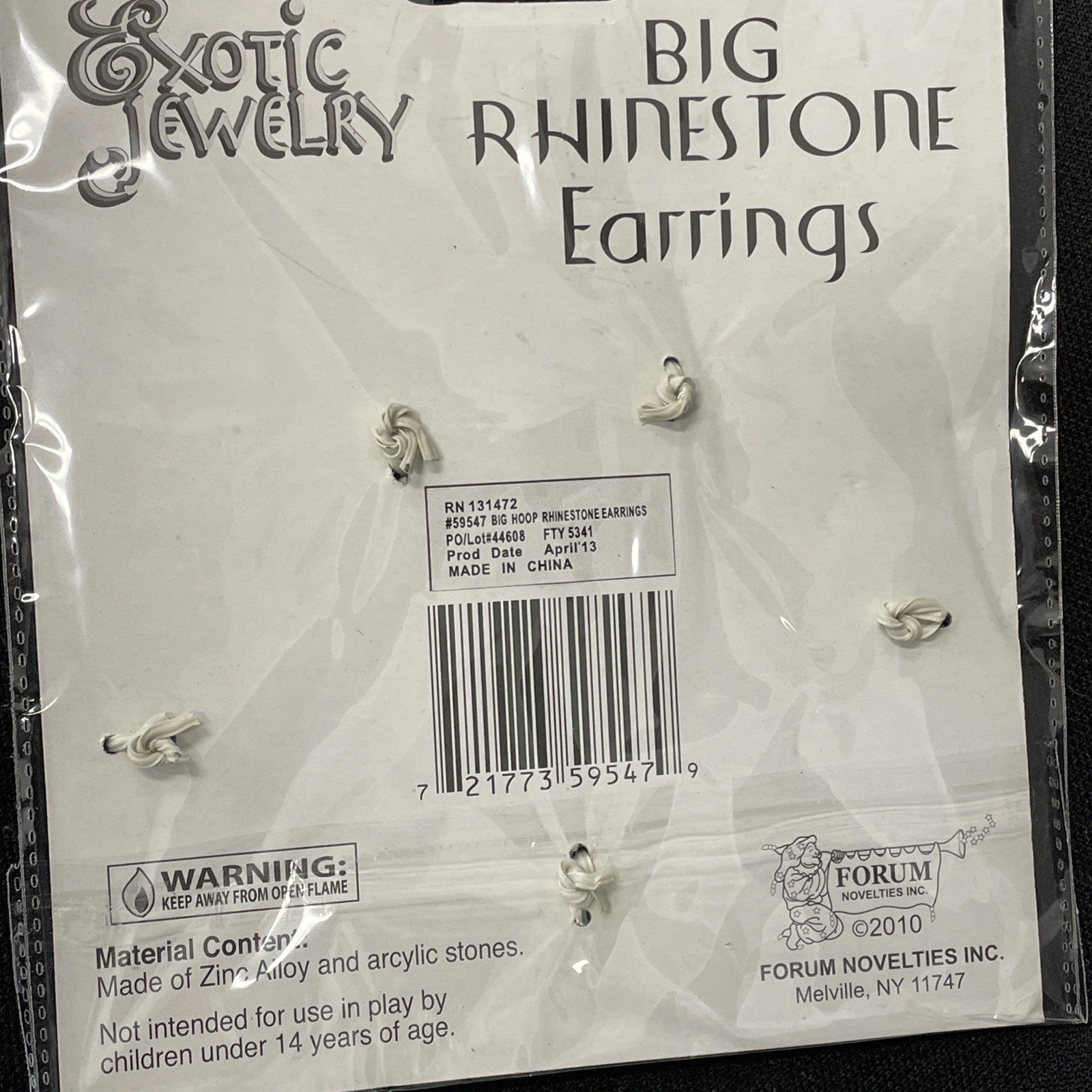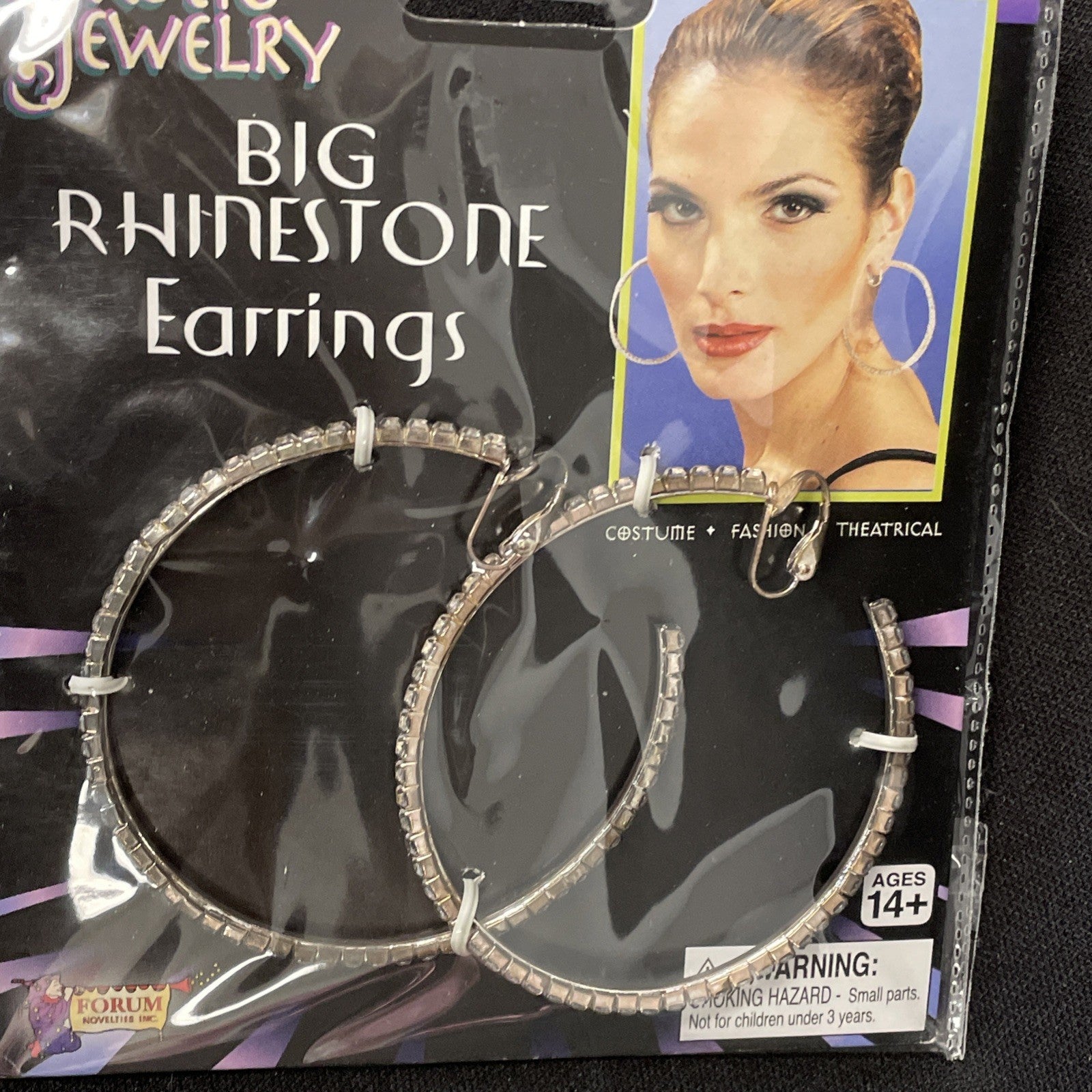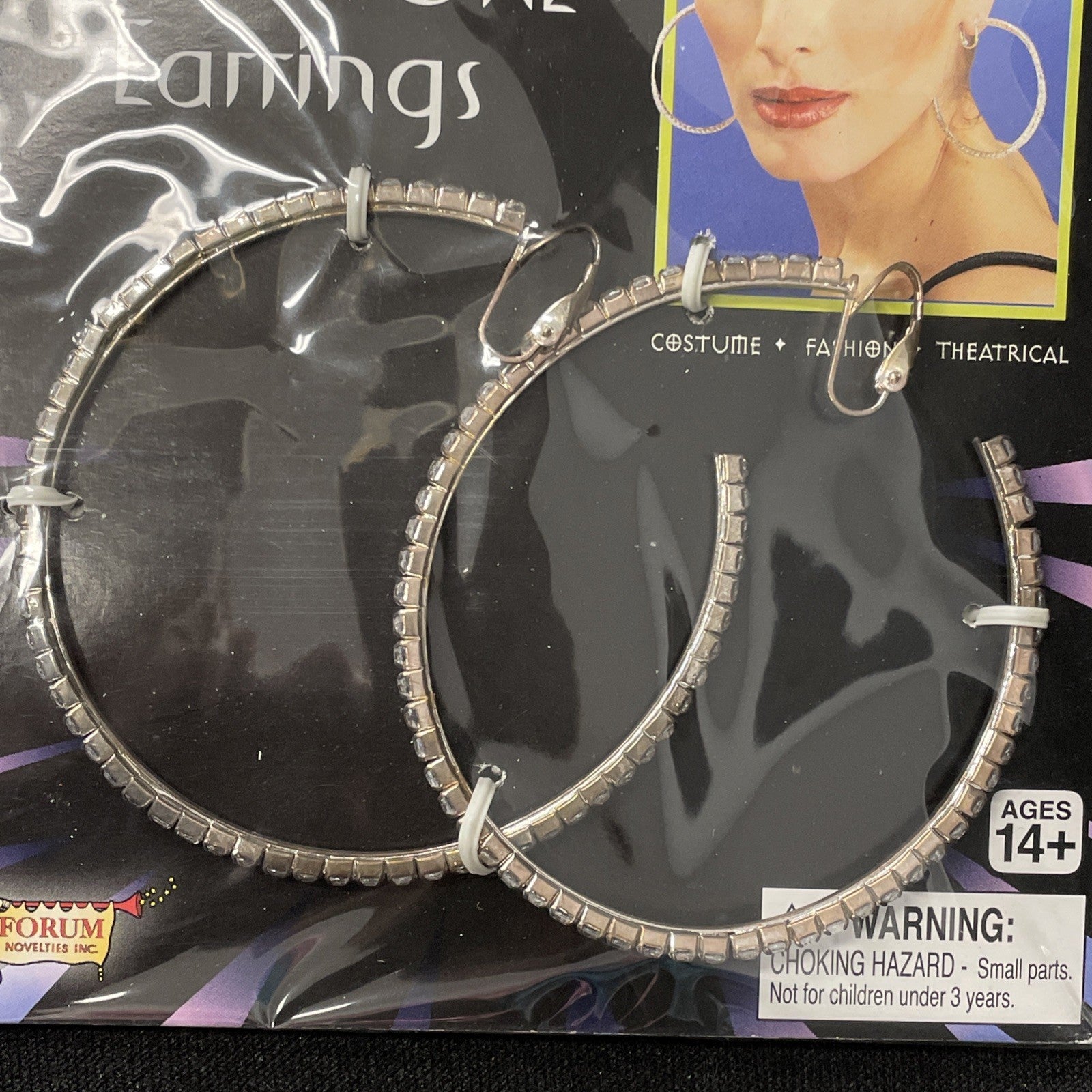 Big Hoop Rhinestone Earrings ClipOn Disco 70's Costume Accessories