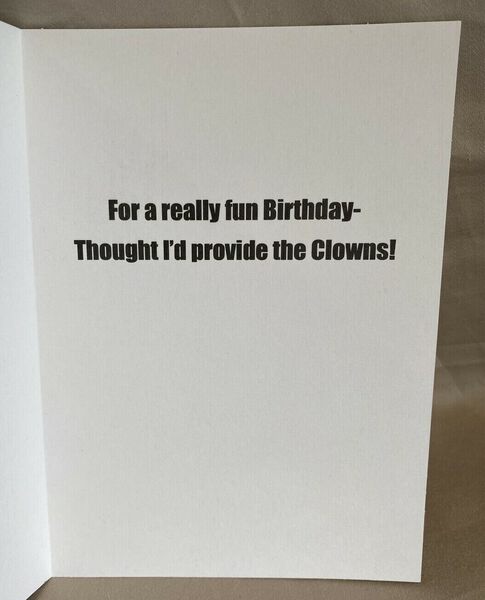 Birthday Greeting Card w/Envelope NEW. Condition is "New". Inside: For a really fun Birthday- Thought I'd provide the Clowns! NEW Ask about combined shipping on all greeting cards GC1036