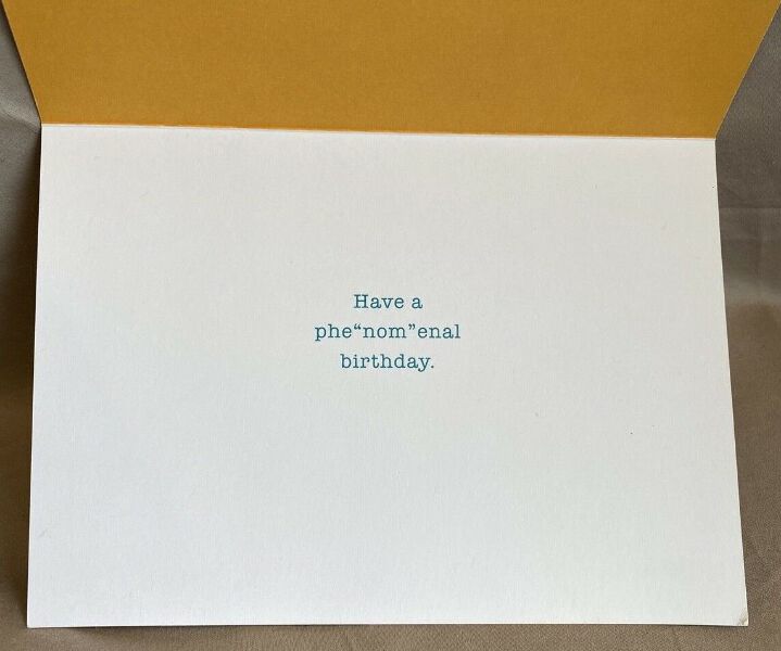 Birthday Greeting Card w/Envelope NEW. Condition is "New". Outside: Nom. nom. nom. Inside: Have a phe"nom"enal birthday. NEW Ask about combined shipping on all greeting cards GC1090