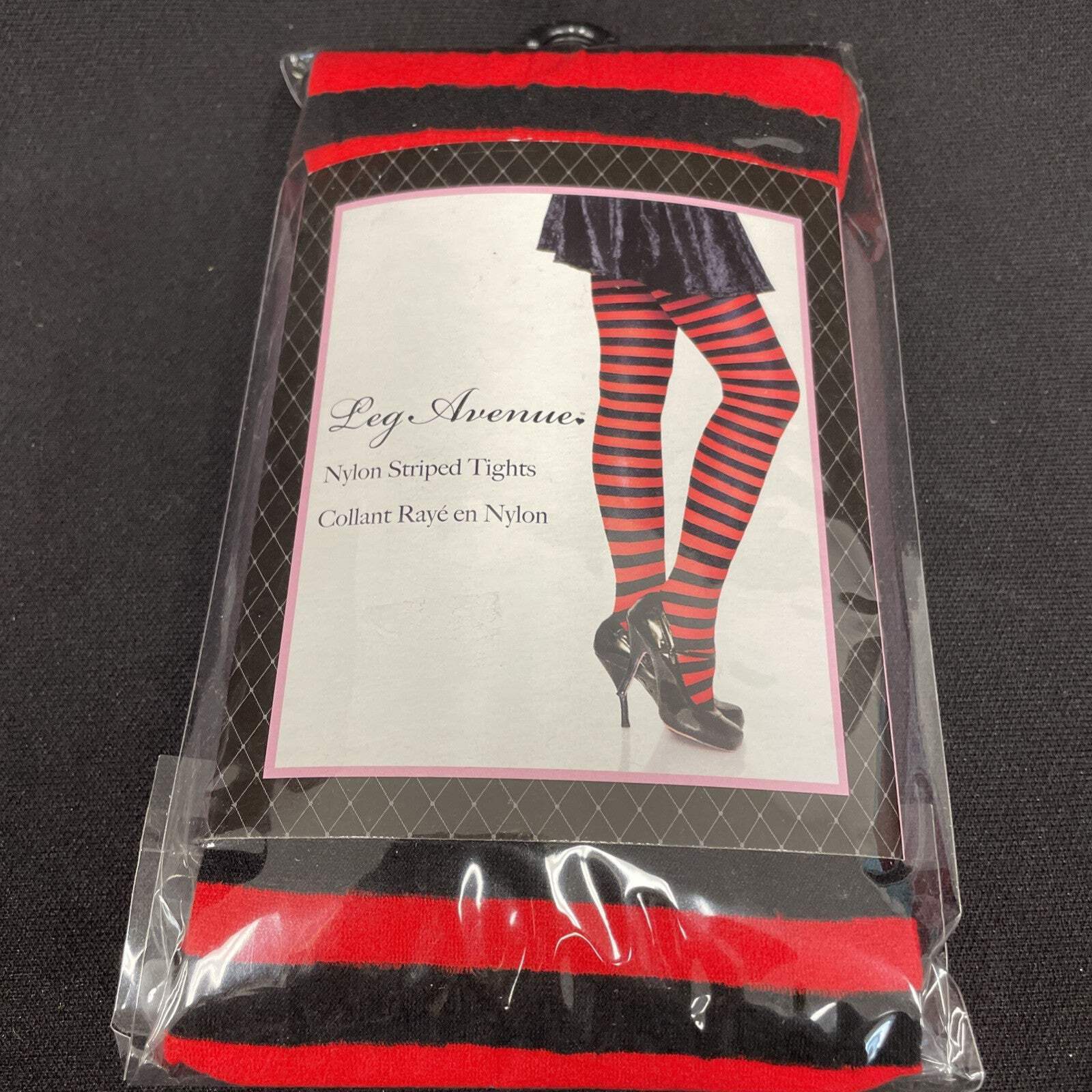 Black & Red Striped Nylon Tights Stocking One Size By Leg Avenue
