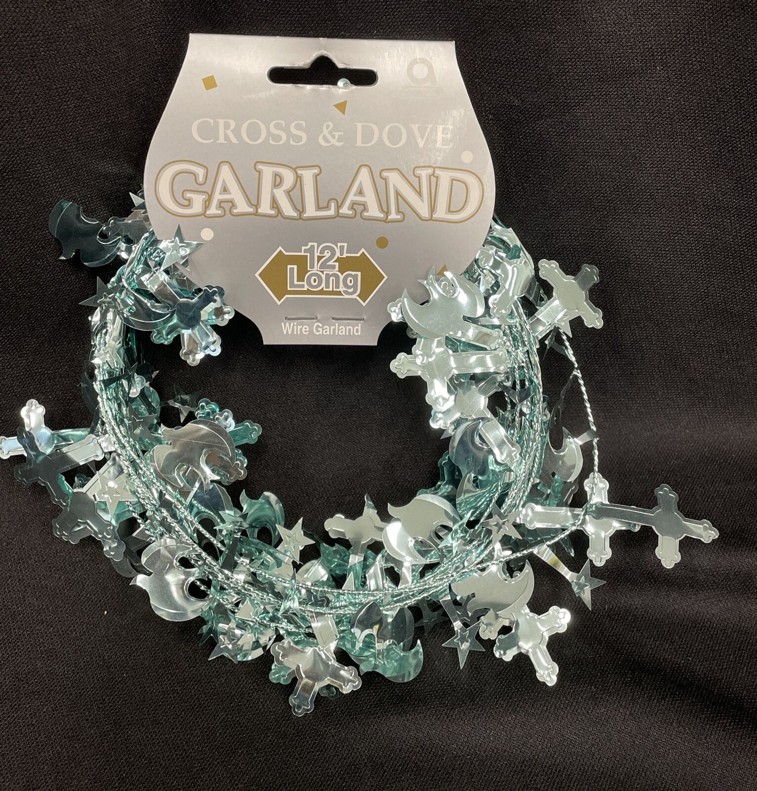 Blue Cross & Dove 12 Ft Garland Decoration