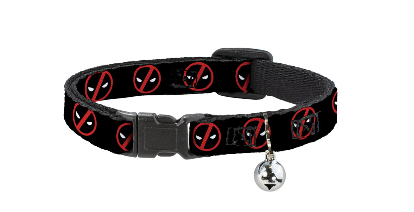 Breakaway Cat Collar with Bell Deadpool Logo WDP047 Fits 915"