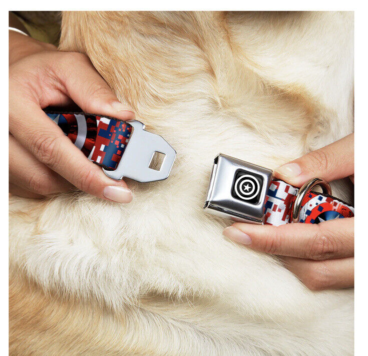 Buckle Down Captain American Digital Camo Seatbelt Dog Collar 1” Wide Sz Large