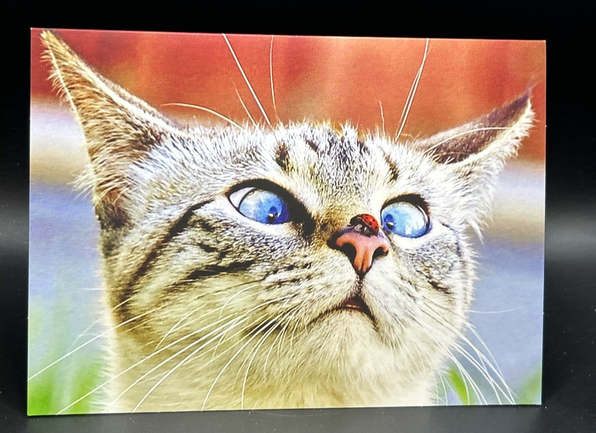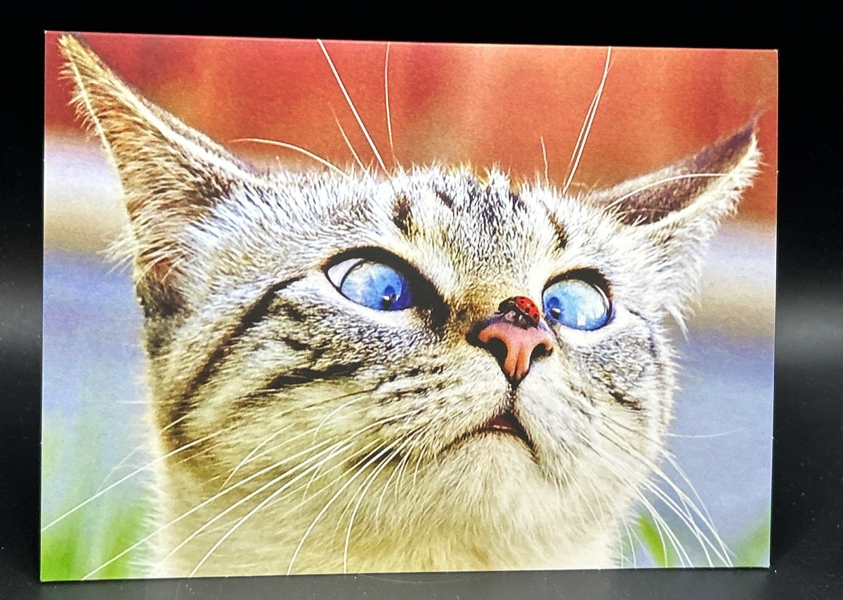 Cat w/Ladybug on Nose Blank Greeting Card w/Envelope