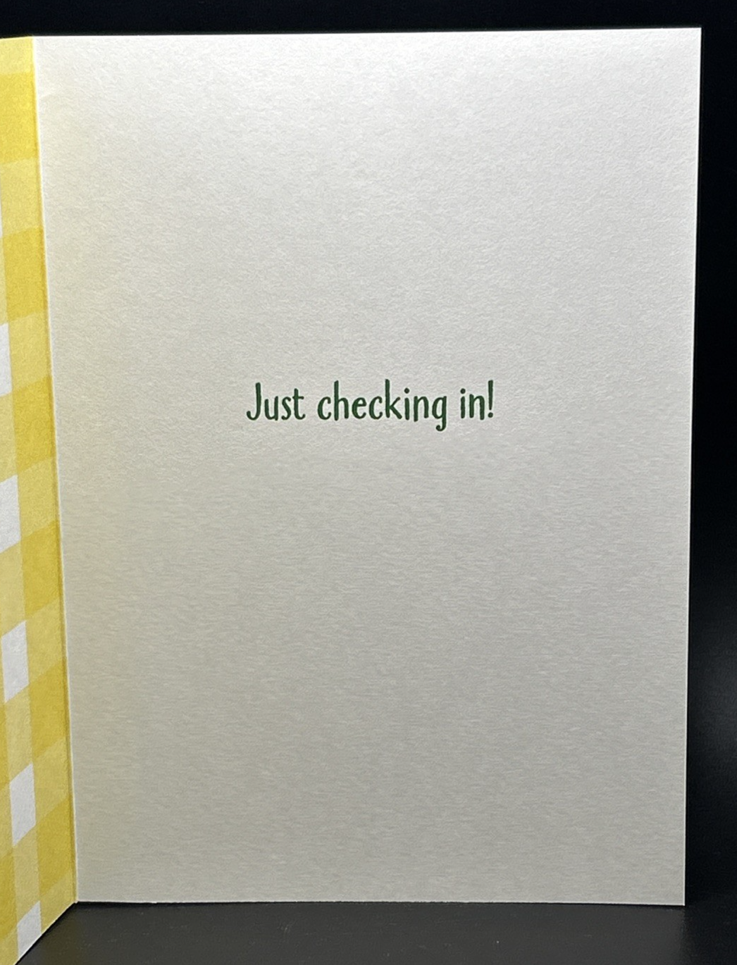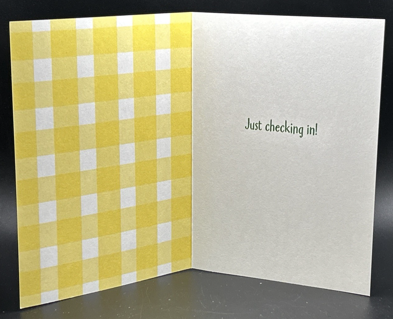 This product is a Checking In Greeting Card with Envelope, featuring a chequered pattern design. The card serves as a thoughtful way to check in on someone's well-being and is perfect for sending warm wishes or a quick hello. This item could be ideal for sending to friends, family, or colleagues to show appreciation or simply to stay connected. The inclusion of an envelope makes it easy to send and receive the card, making it a convenient and meaningful way to communicate in a personal and heartfelt manner.