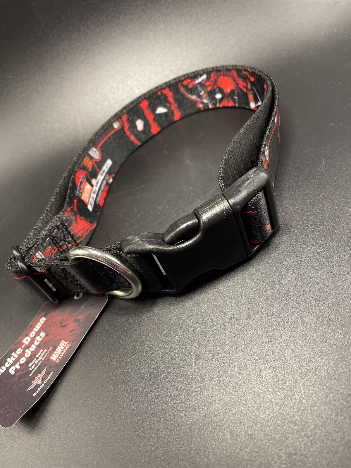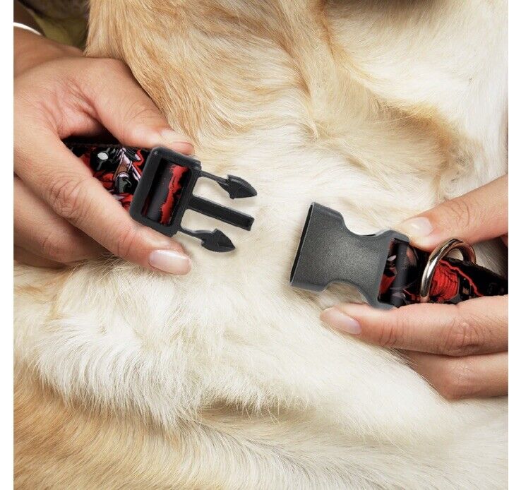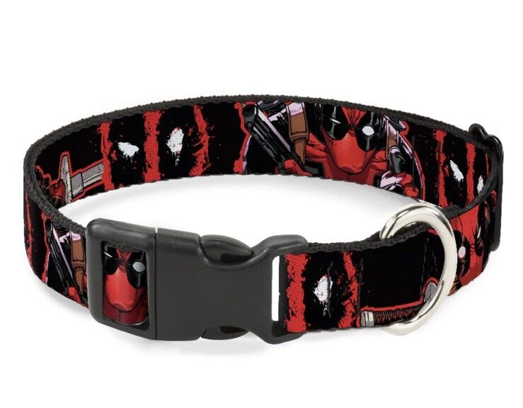 Marvel Deadpool 2-Action Poses Splatter Logo Blk WDP031 Plastic Clip Dog Collar Sz L