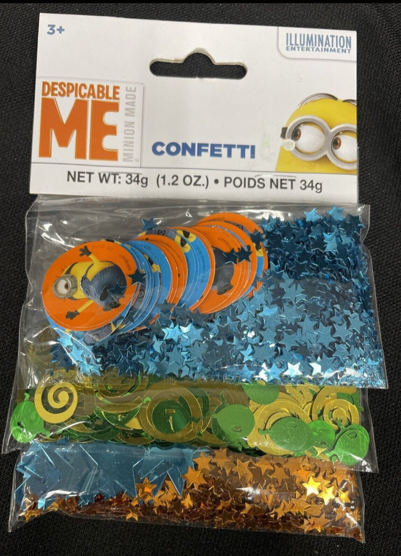 This product is Despicable Me Party Confetti in a 1.2 oz package. It falls under the Brand aspect as Unique, Type aspect as Confetti, and Occasion aspect as Party. The confetti is perfect for adding a fun and festive touch to any party or celebration with a Despicable Me theme.