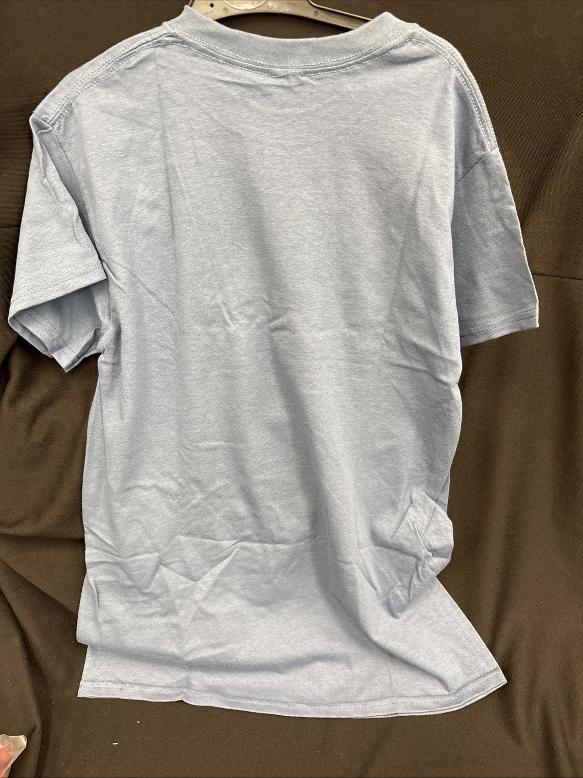 The Destiny 2 Beyond Light T-shirt in size S is a blue short sleeve shirt made of cotton. It features a solid pattern, crew neckline, and a regular fit. Perfect for fans of the video game, the shirt showcases the theme of Destiny 2 Beyond Light and is suitable for wearing during the summer, fall, and spring seasons. With the brand's logo and a hero character design, this T-shirt is ideal for men looking to represent their love for the game in a stylish and comfortable garment.