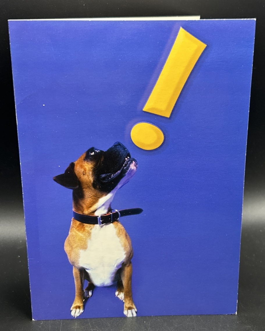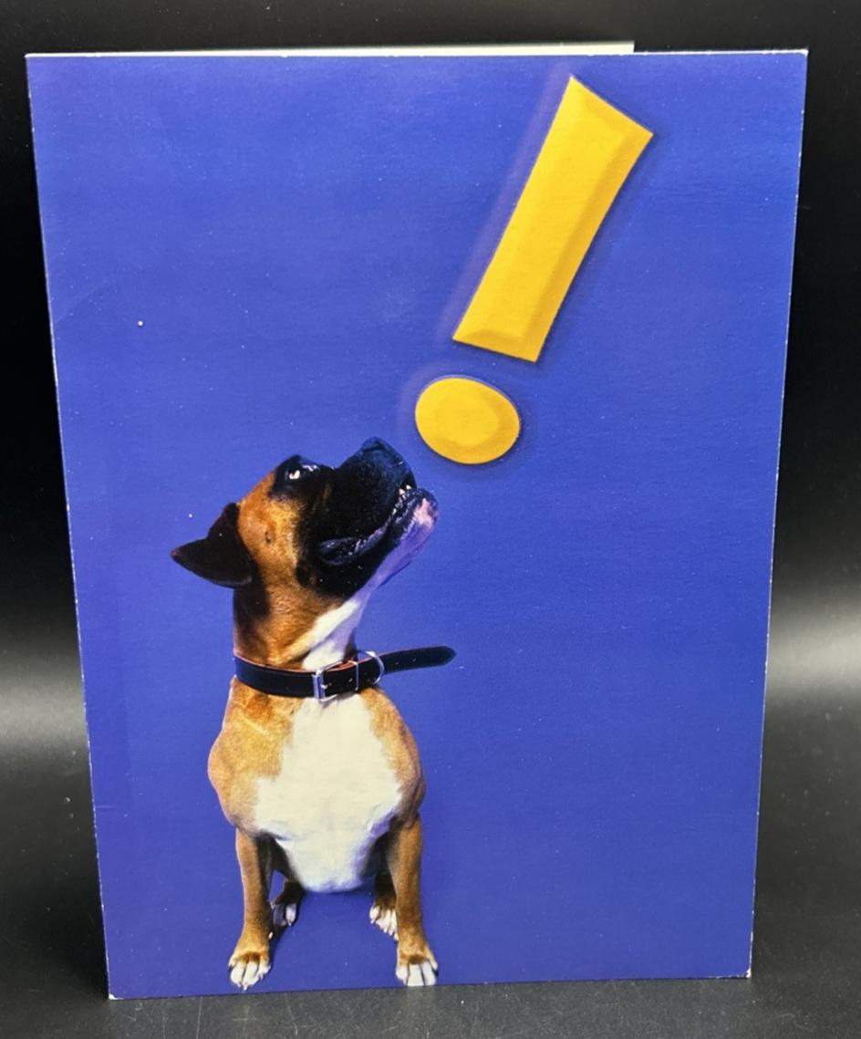The Designer Greetings Dog with Large Yellow Exclamation Point Greeting Card is a colorful and playful greeting card featuring a whimsical design of a dog with a big yellow exclamation point. Perfect for animal lovers and those wanting to add a fun and cheerful touch to their greeting. The card includes an envelope for easy gifting and is sure to brighten up any recipients day.