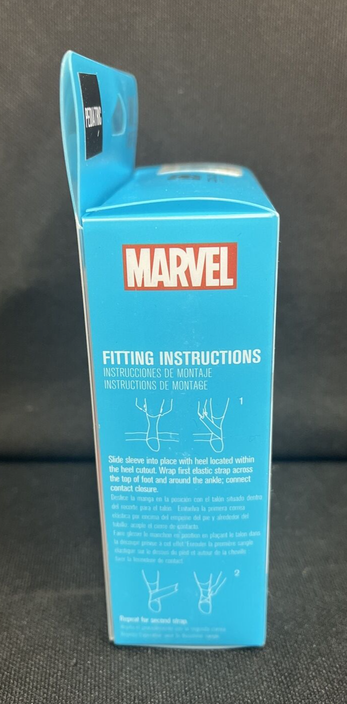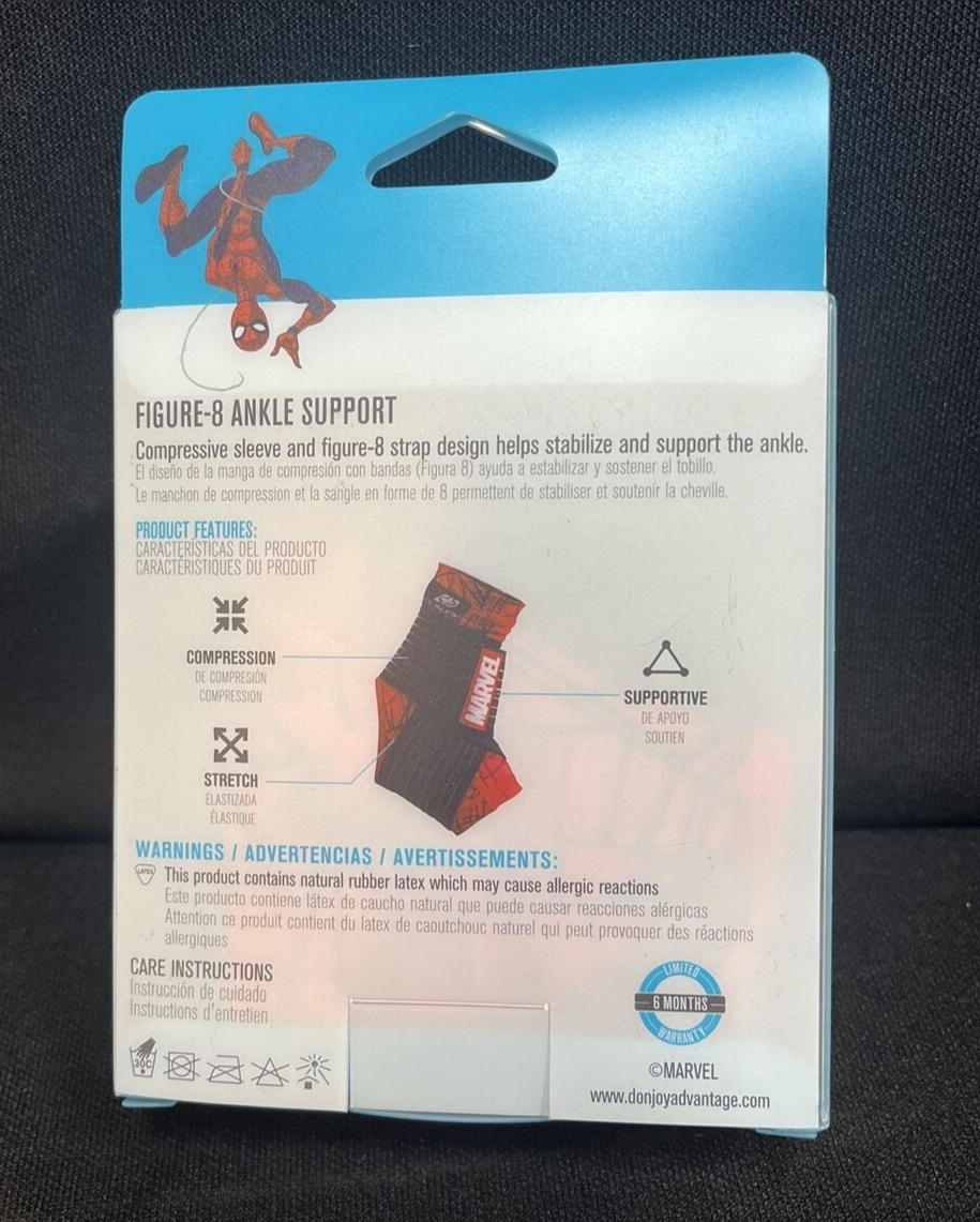 Marvel Spider-Man Ankle Sleeve w/Compression Figure 8 Straps PEDIATRIC OPEN HEEL CONSTRUCTION: Easy on/off application with heel and tendon support ADJUSTABLE STRAP: Adjustable, figure-8 straps help offer medial/lateral ankle support and aid to prevent injury UNIVERSAL DESIGN: Can wear on the right or left foot and fits in most shoes MARVEL THEME: Marvel Super Hero design makes this unique and fun to wear COMPRESSION: Mesh undersleeve helps promote compression and breathability
