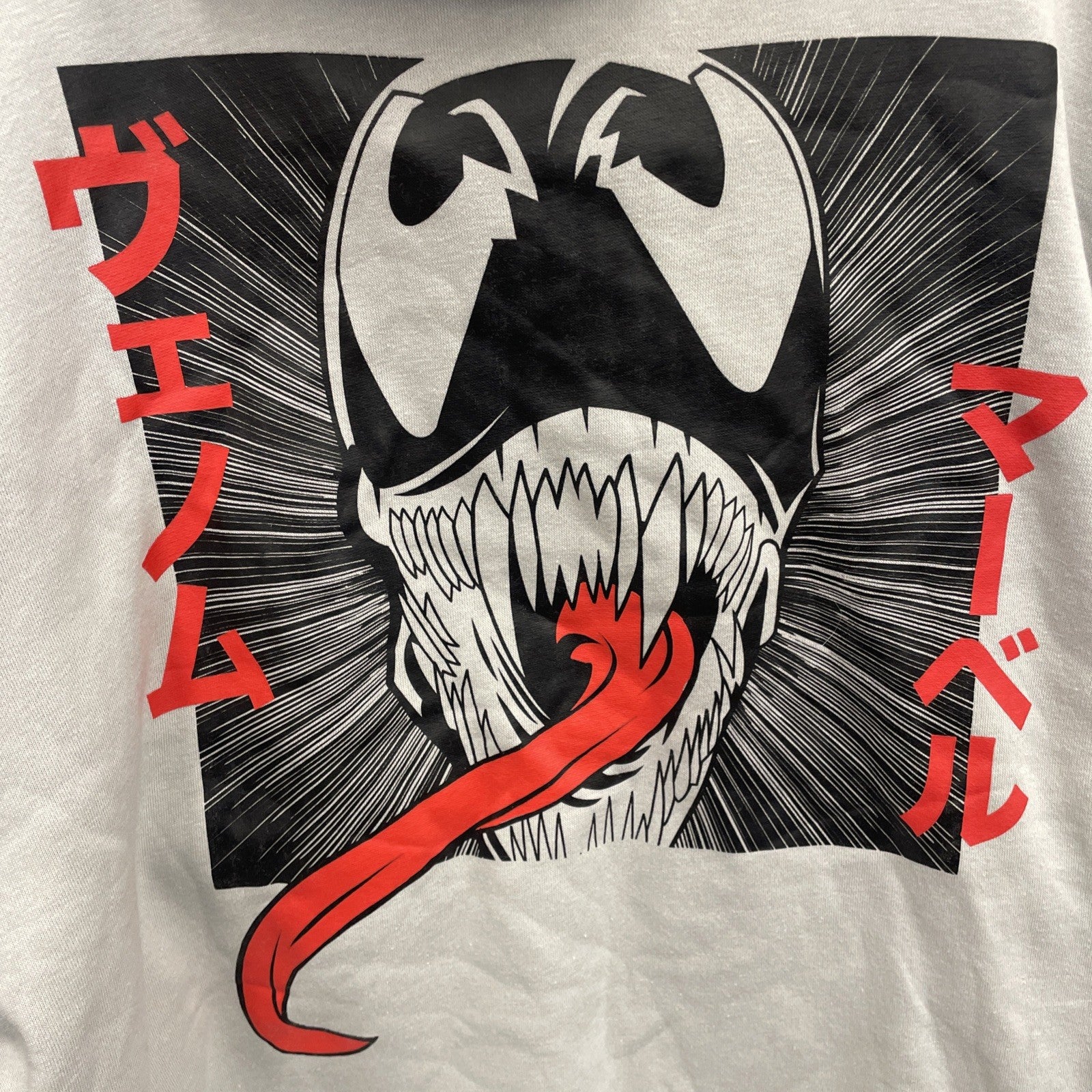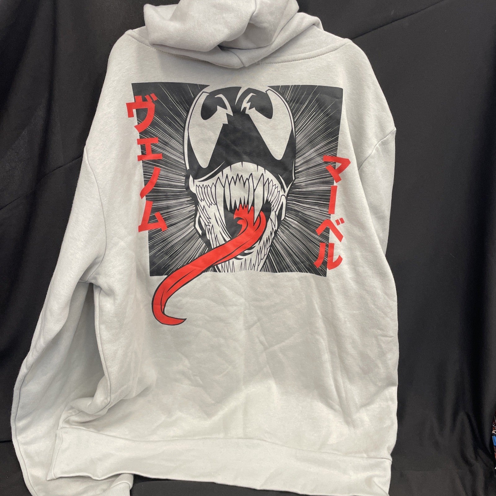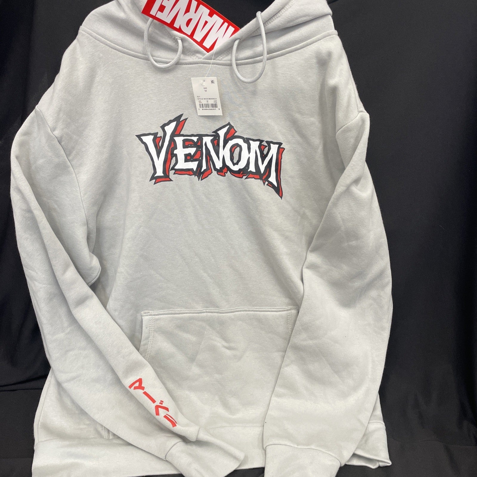 Step out in style with the Men's Marvel Venom Graphic Sweatshirt in Silver. Featuring the logo of a Marvel's character Venom, this sweatshirt is a cool addition to your wardrobe. Made from soft fabric blend for comfy wear, this hooded sweatshirt comes with kangaroo pockets in the front, banded cuffs and hem and a drawstring hoodie for a classic flair.