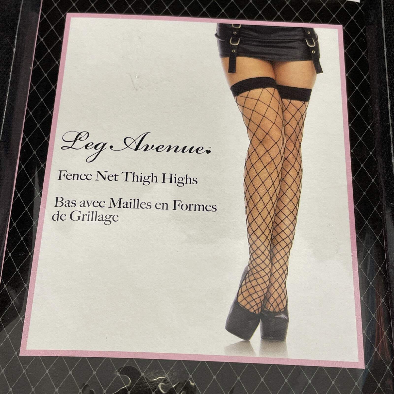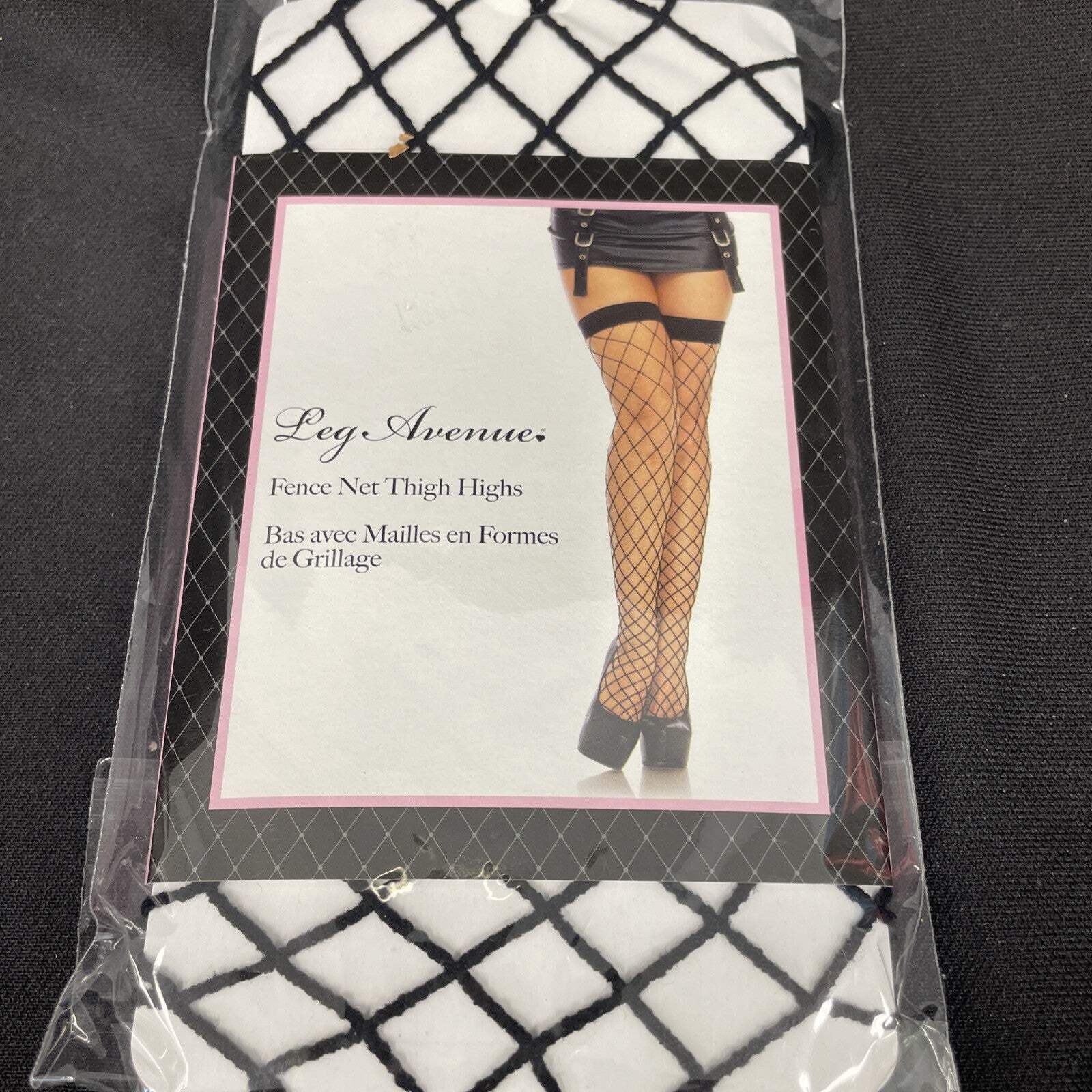 Fish Net Thigh High Stockings Black with Band Top by Leg Avenue One Size