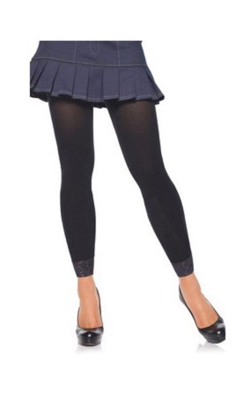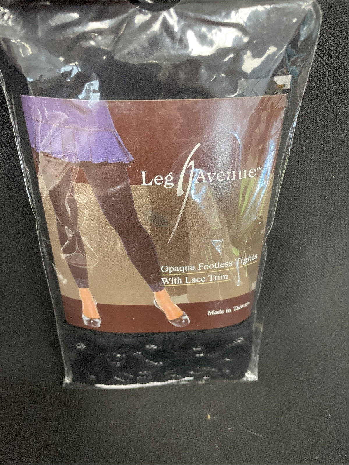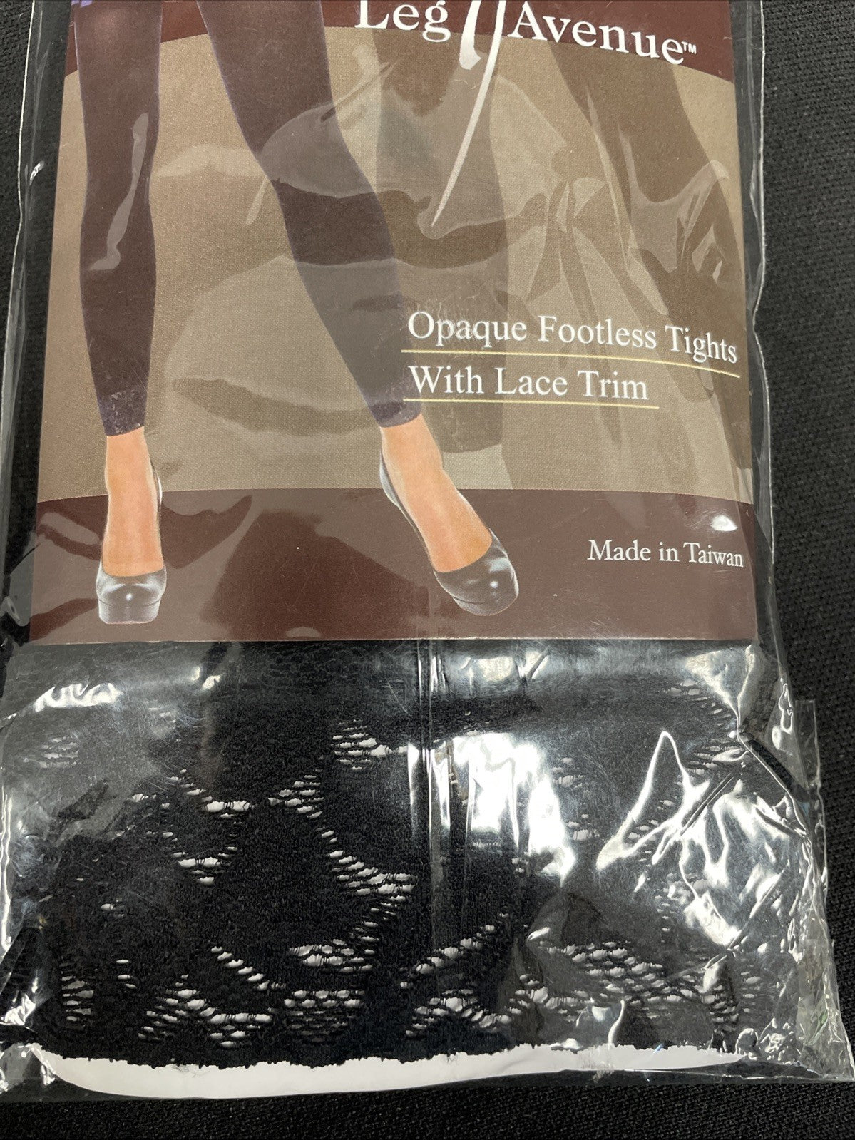 Leg Avenue lace trimmed opaque footless tights. About Leg Avenue: escaping our everyday realities is a fantasy we have all indulged in. Living out our dreams and stepping into a world of imagination.