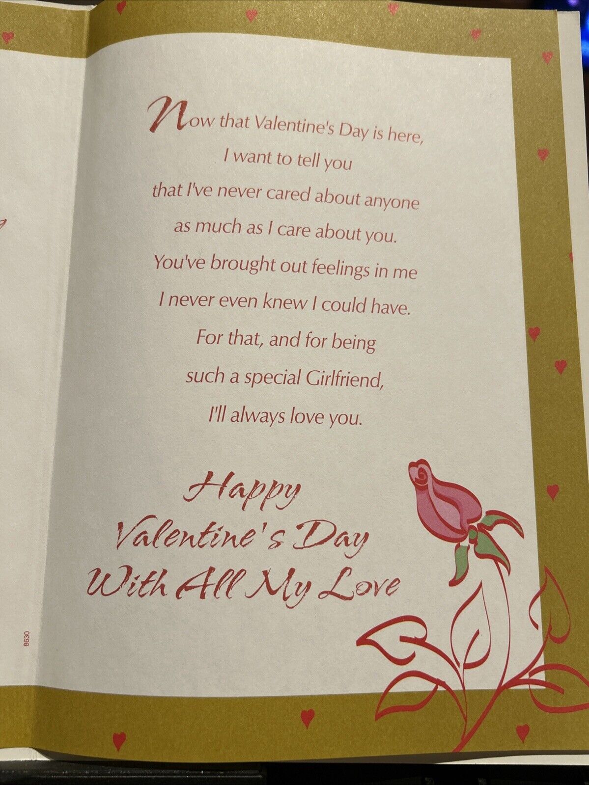 The product is a large Valentine's Day greeting card with an envelope designed by Designer Greetings. It is specifically meant for a girlfriend and is perfect for expressing your love and affection on Valentine's Day.