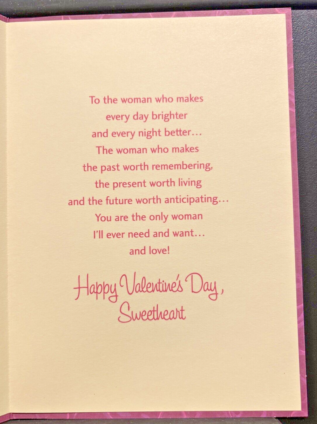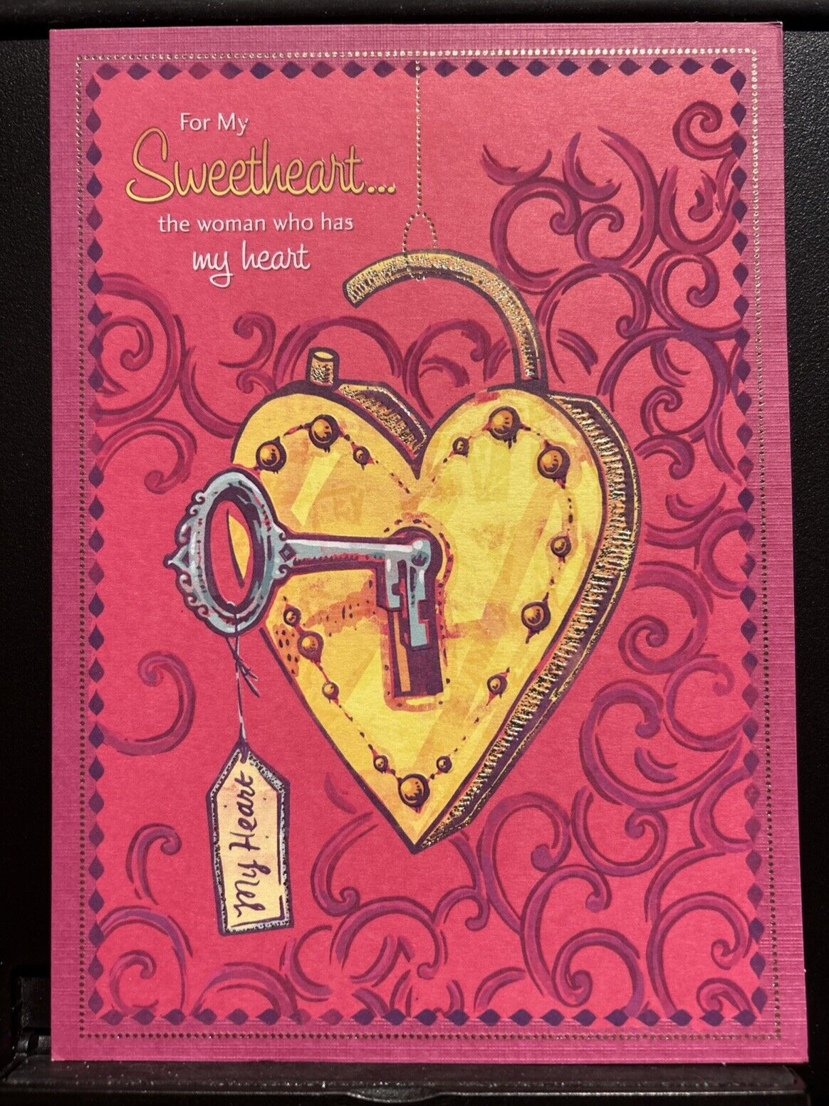 The product is a "For My Sweetheart" greeting card designed by Designer Greetings for women. It comes with an envelope and is part of the Sweethearts character family.