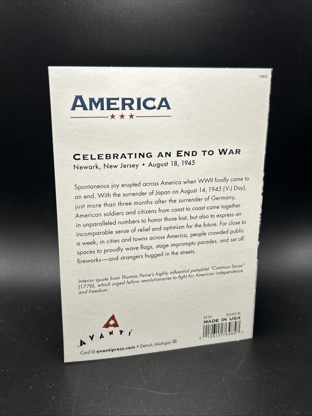 The "Friendship (1945 End of War) Greeting Card" by Avanti Press is a heartfelt and nostalgic greeting card perfect for expressing gratitude and celebrating the end of World War II. The card features a design that captures the spirit of friendship and hope during a difficult time in history, making it a meaningful choice for sending to loved ones. The inclusion of an envelope adds a personal touch and ensures the card is delivered in a thoughtful manner.