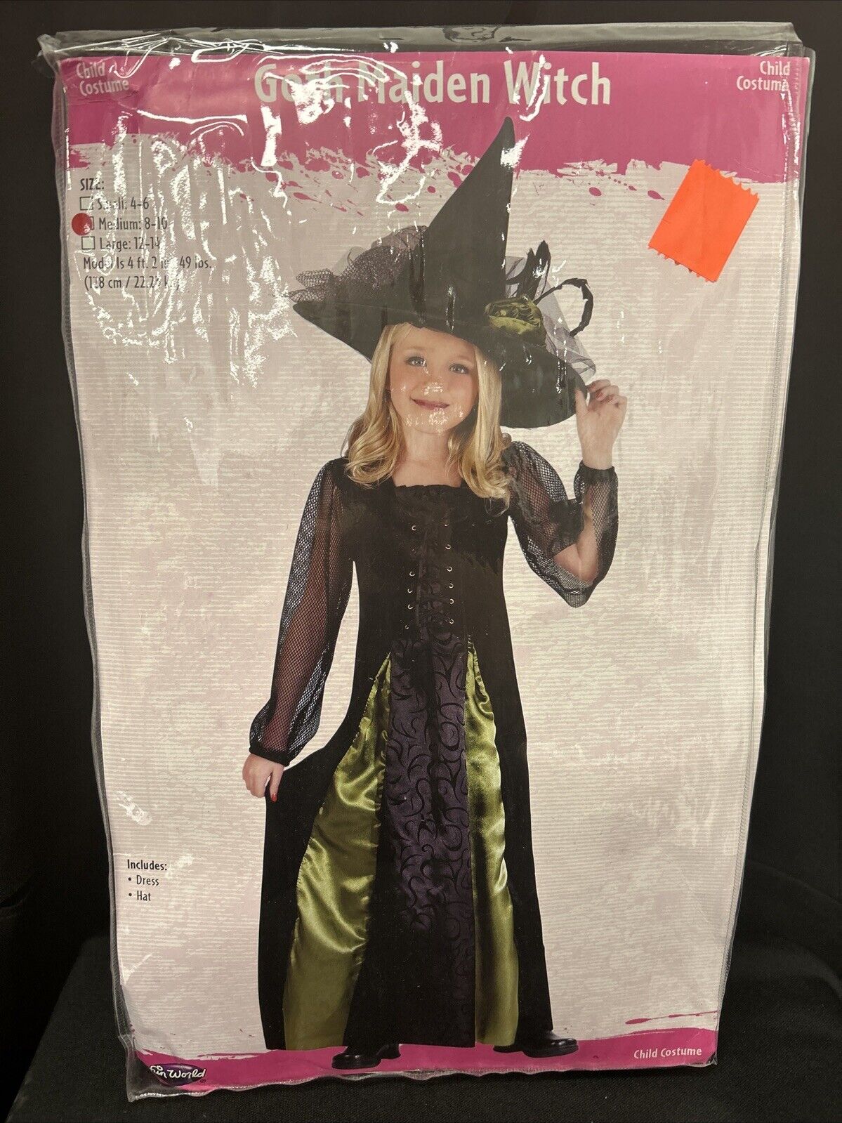 Fun World Girls Black & Green Goth Maiden Witch Dress Costume Medium (8-10)