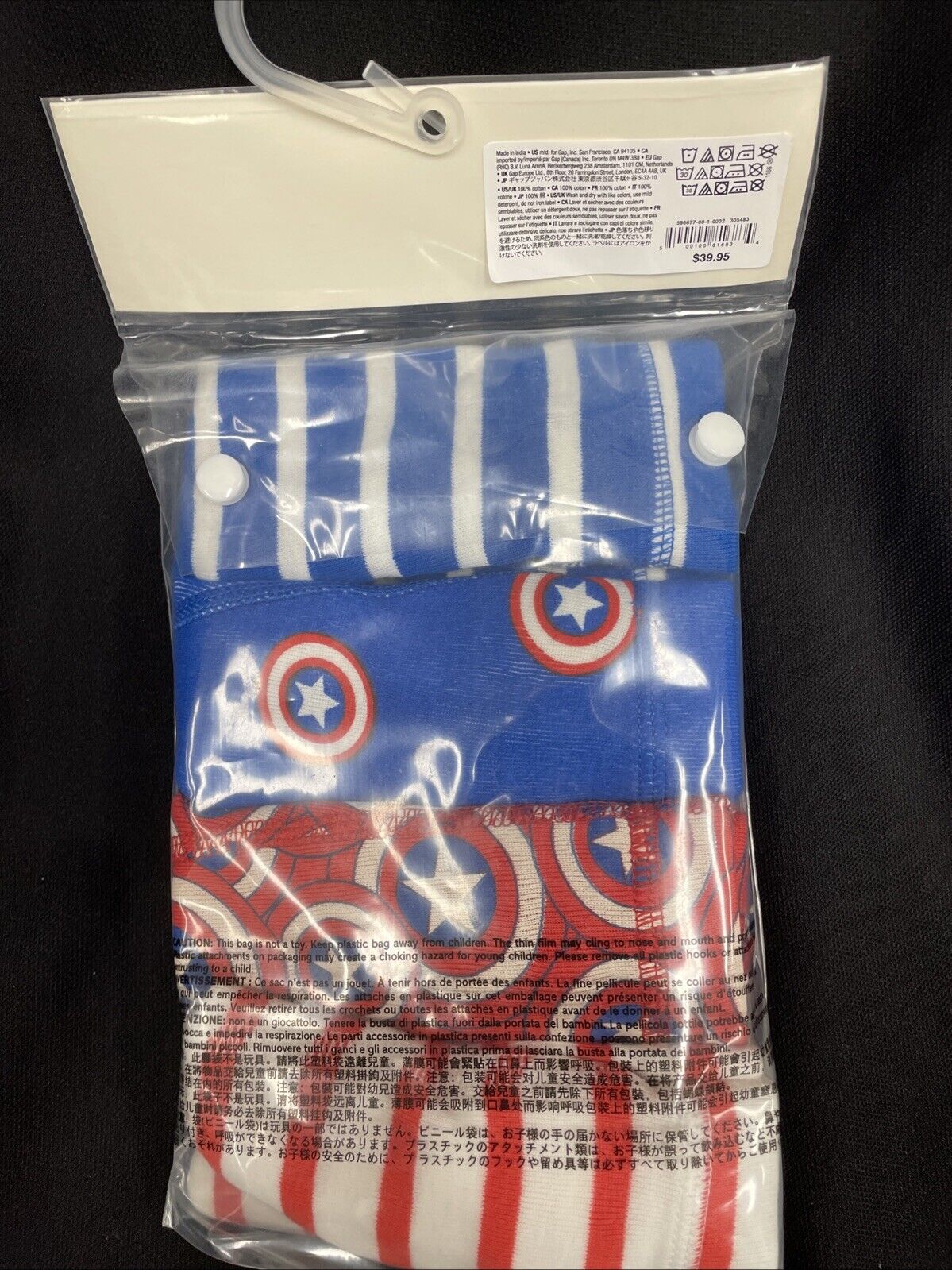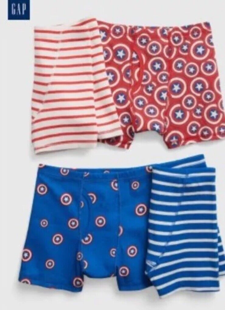 Dress up your little superhero in the Gap Kids MARVEL SUPER HERO 4 pc Trunks Boxer Briefs. Made of 100% cotton, these briefs are soft and comfortable for all-day wear. The multi-color boxer briefs features their favorite superhero, Captain America. The elastic waistband ensures a snug fit while the reinforced double stitching provides durability.