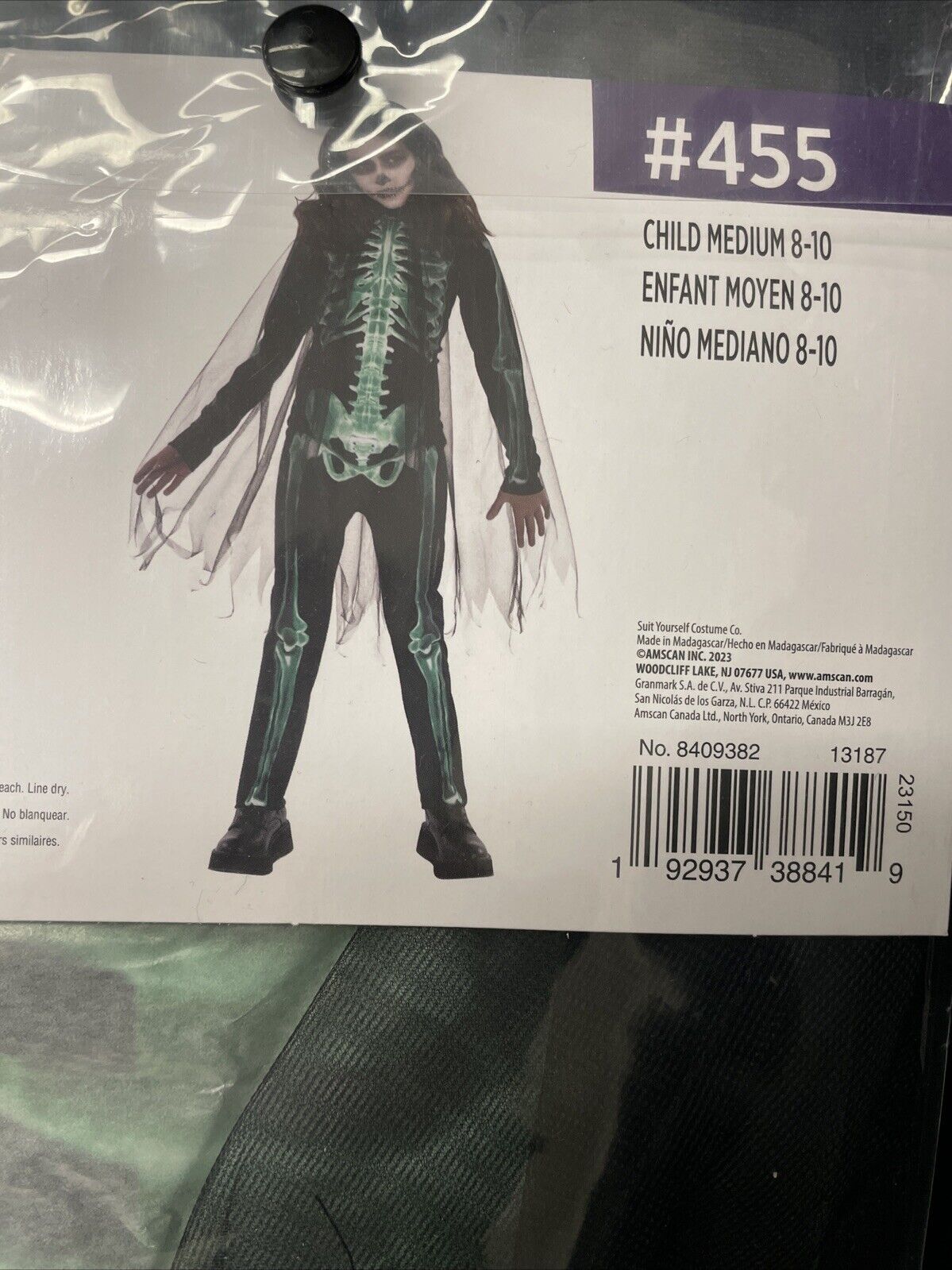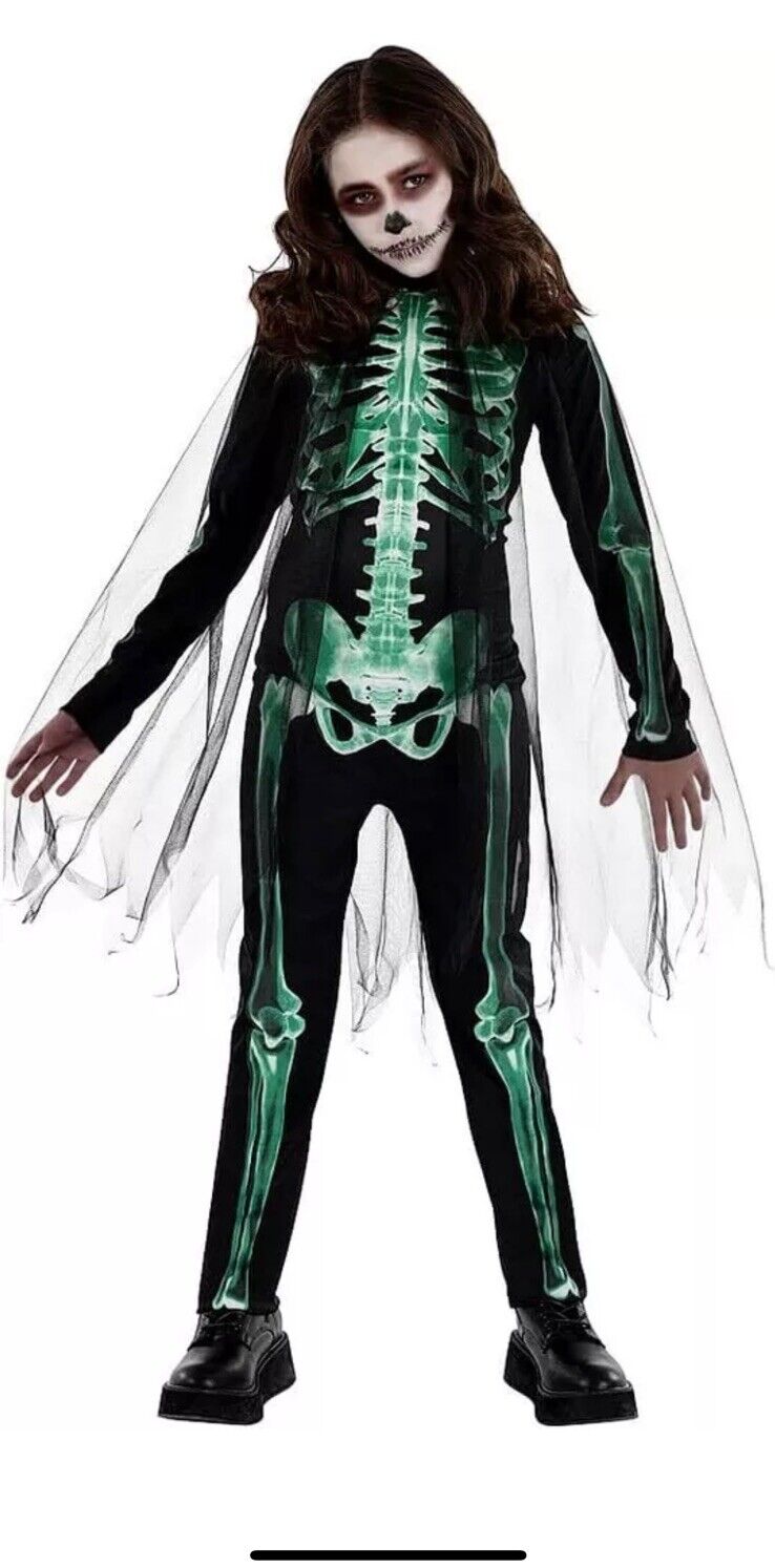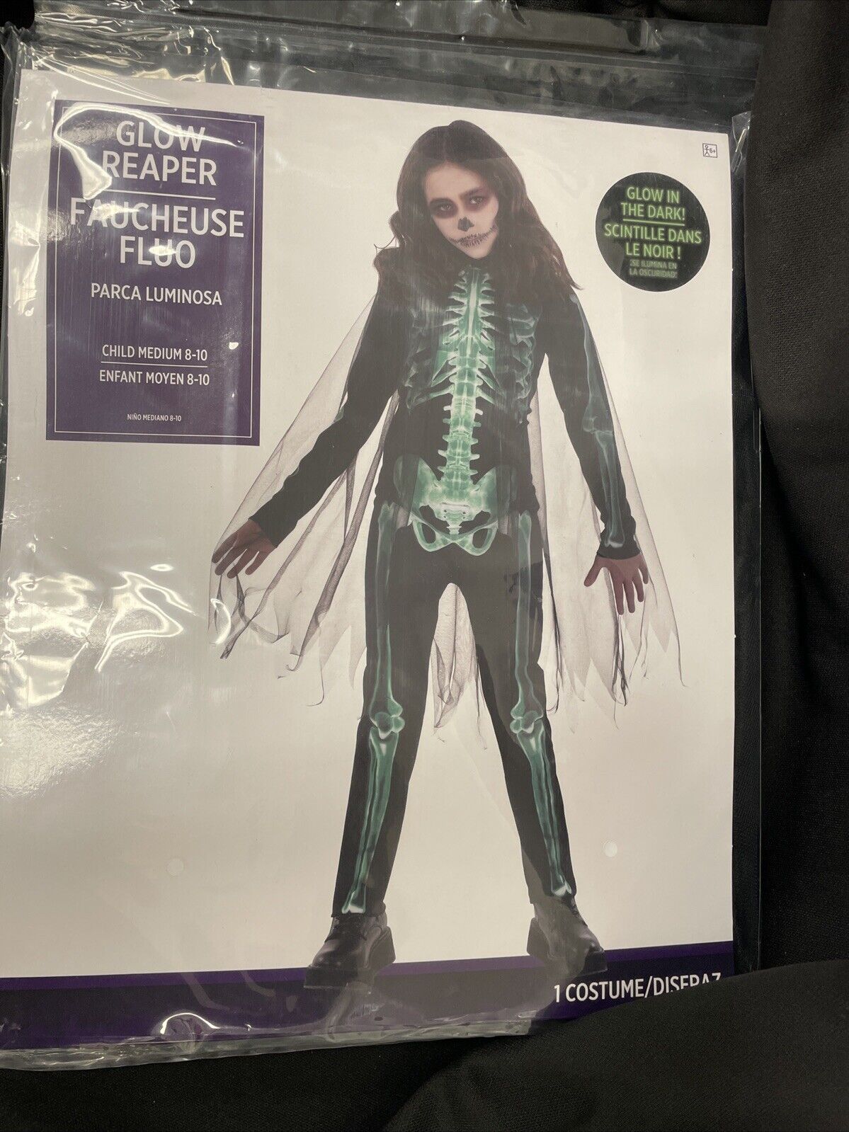 Glow Reaper Grim Skeleton Girl Suit Child Costume Size Med 8-10