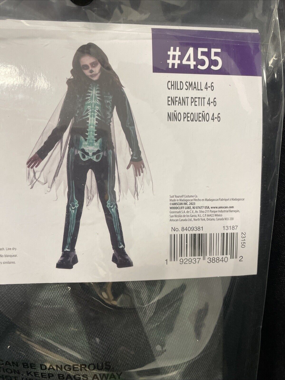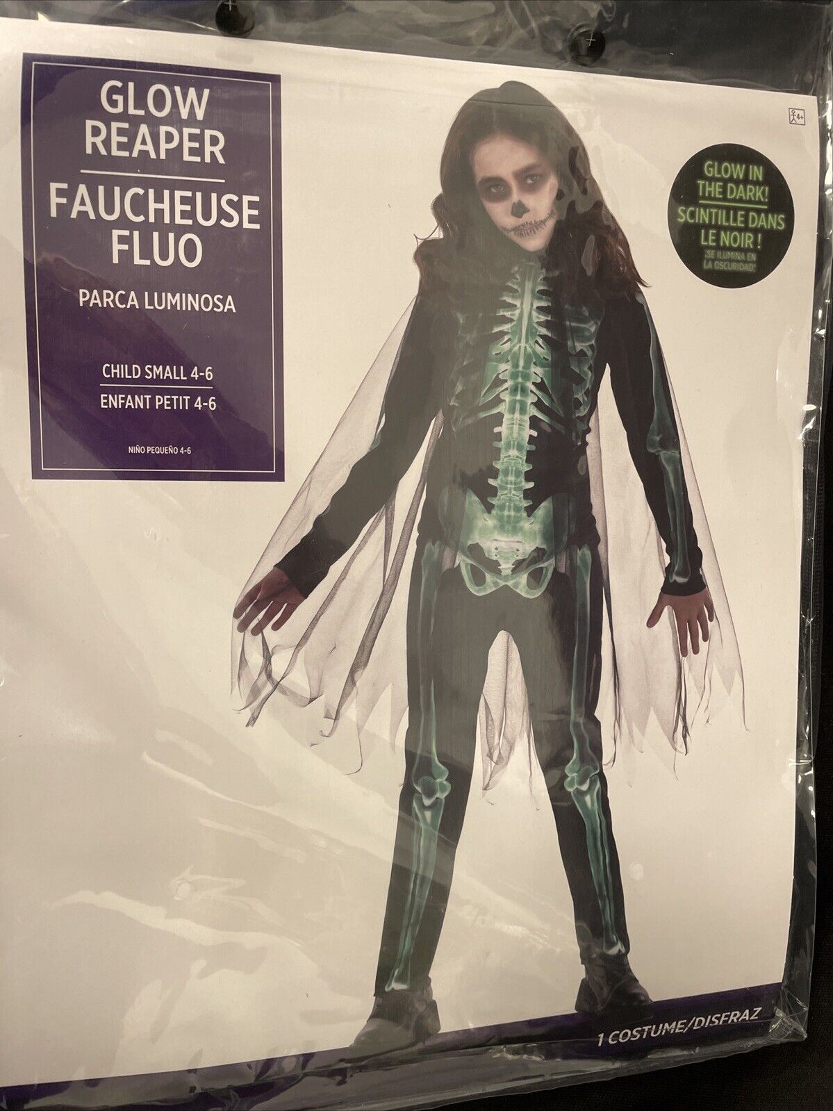 Glow Reaper Grim Skeleton Girl Suit Yourself Fancy Dress Halloween Size S 4-6
