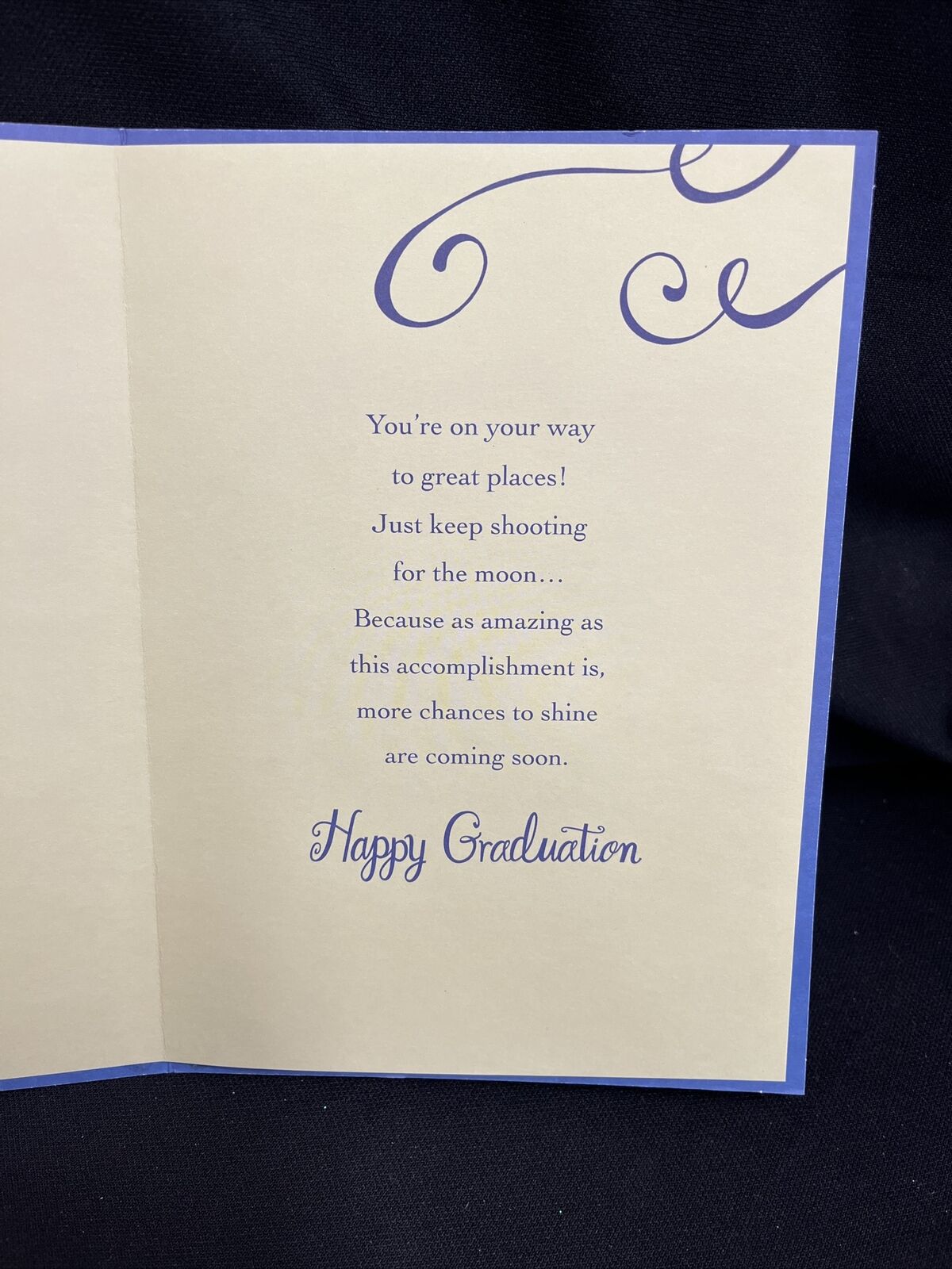 Send your congratulations across the miles with this beautiful Graduation card from Designer Greetings. Perfect for celebrating the occasion of graduation, this card features a stunning design and comes with an envelope for easy mailing. Whether you're near or far, show your loved one how proud you are of their achievement with this heartfelt greeting card.