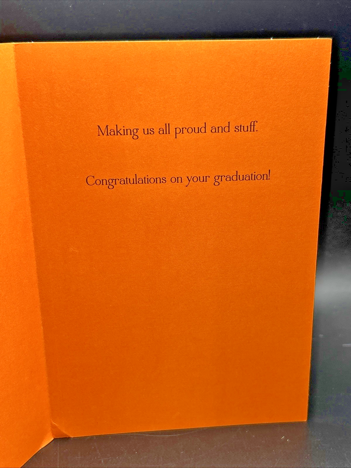 The Graduation Greeting Card with Envelope by Recycled Paper Greetings is a thoughtful and eco-friendly way to celebrate a graduation. This greeting card is designed specifically for the occasion of graduation, making it a perfect choice for sending warm wishes to someone special. The card is made with recycled paper, showing that you care about the environment while also expressing your congratulations for the graduate's achievement. The included envelope ensures that the card can be easily sent to the recipient, making it a convenient and meaningful option for any graduation celebration.