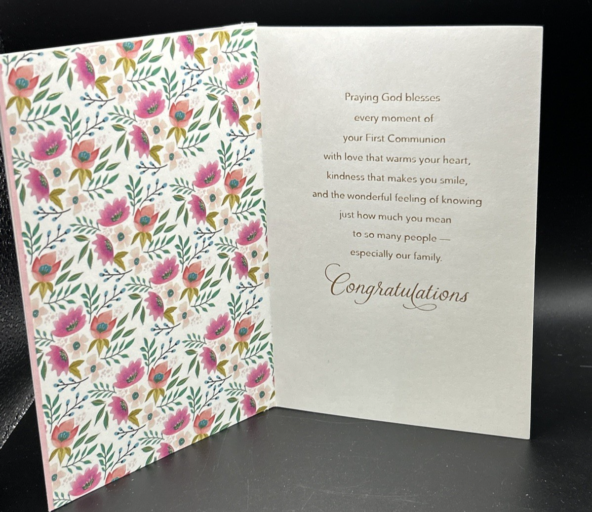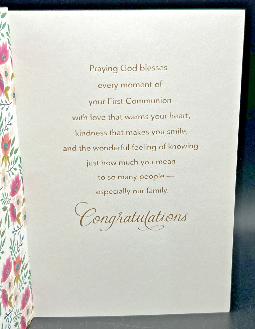 The American Greetings Granddaughter First Communion Greeting Card is a special and meaningful way to celebrate this important milestone in your granddaughter's life. The card comes with an envelope for easy gifting and includes a heartfelt message to commemorate this special day. Perfect for showing your love and affection for your granddaughter during this significant event in her religious journey.
