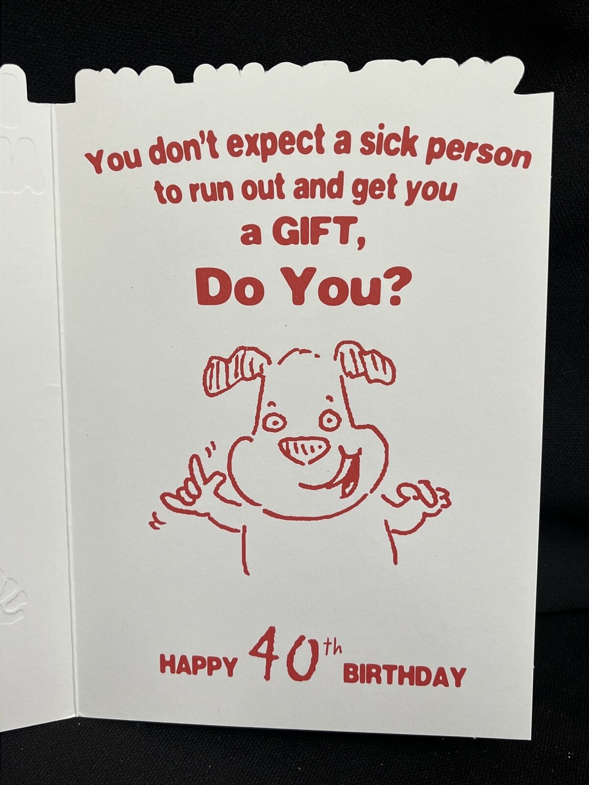 This greeting card is ideal for anyone who appreciates a good laugh and a heartfelt message. The card is perfect for birthdays, anniversaries, or any other special occasion. With its high-quality design and attention to detail, this card is sure to bring a smile to anyone's face.
