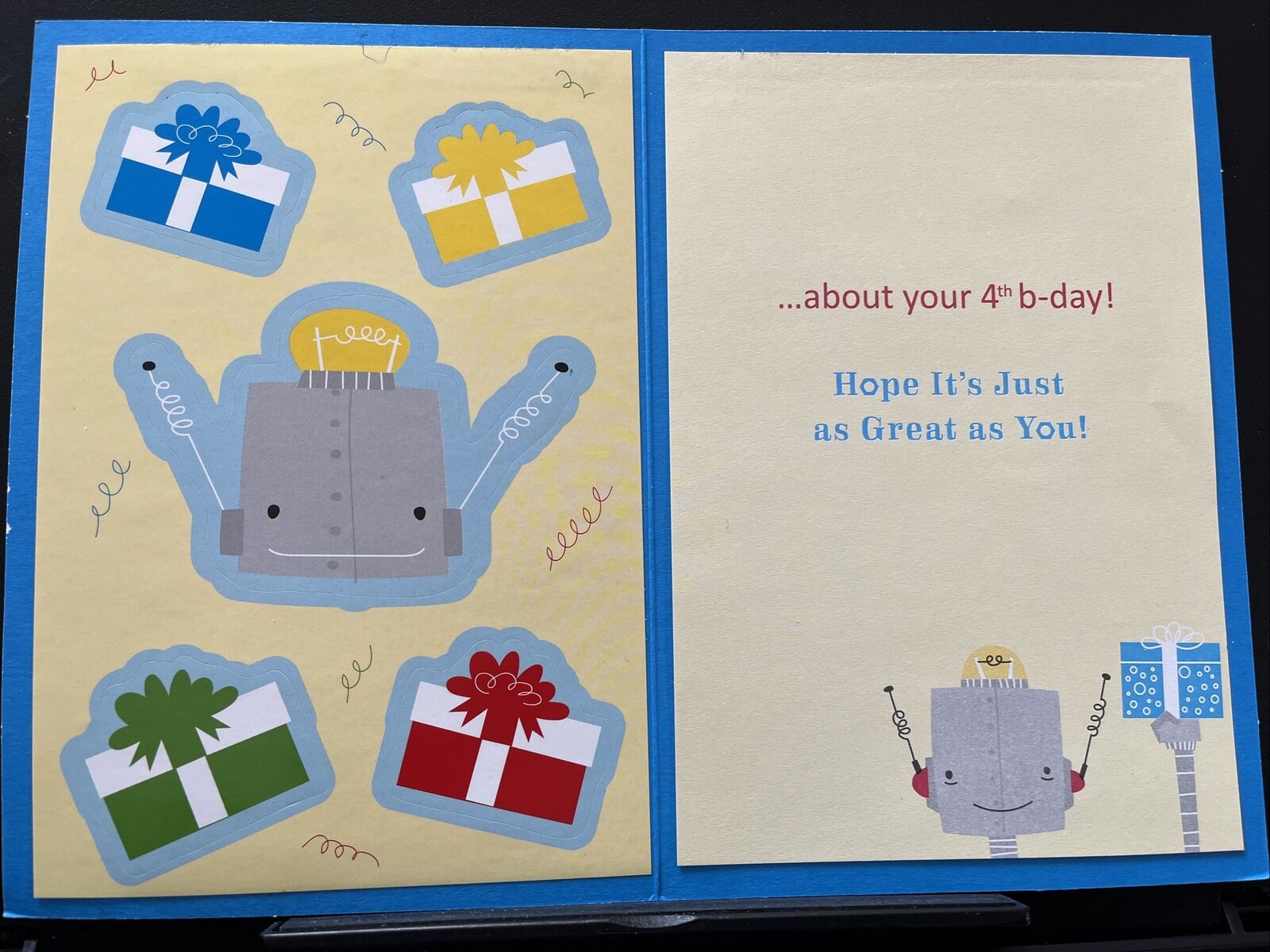 Happy 4th Birthday Greeting Card and Stickers w/Envelope