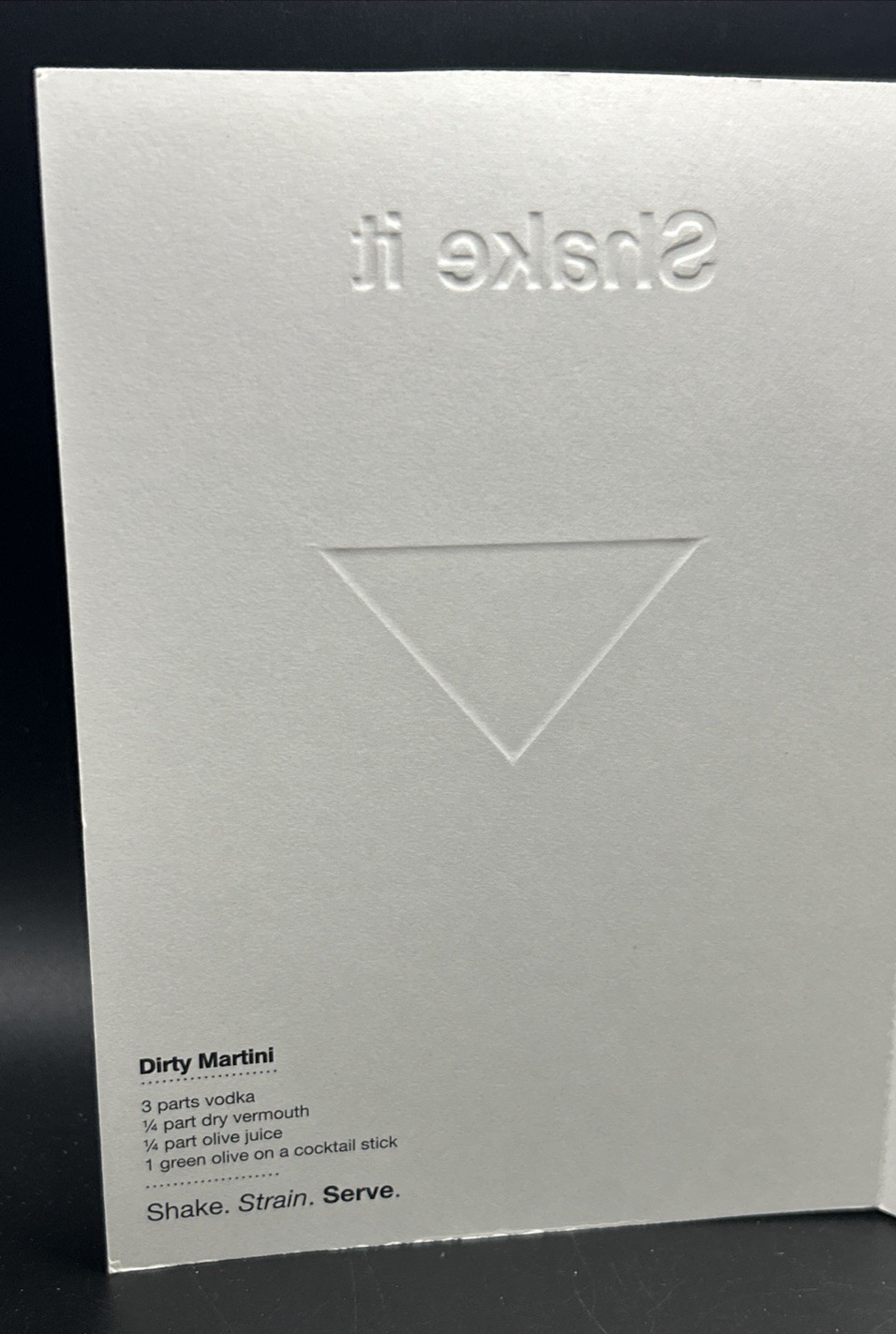 Celebrate a special anniversary with the Happy Anniversary Dirty Martini Greeting Card from Design Design. This stylish card is perfect for sending warm wishes to a loved one on their special day. The card includes a fun and unique design featuring a dirty martini and recipe, making it a perfect choice for those who appreciate a good drink. Complete with an envelope for easy gifting, this card is a thoughtful way to show your appreciation for a milestone anniversary.