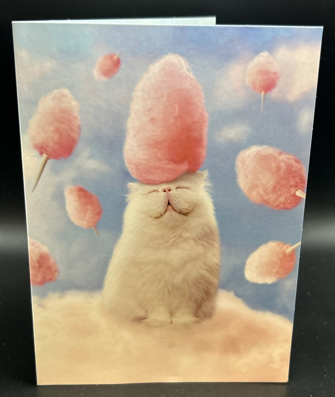 Happy Birthday (Cat and Cotton Candy) Greeting Card w/Envelope