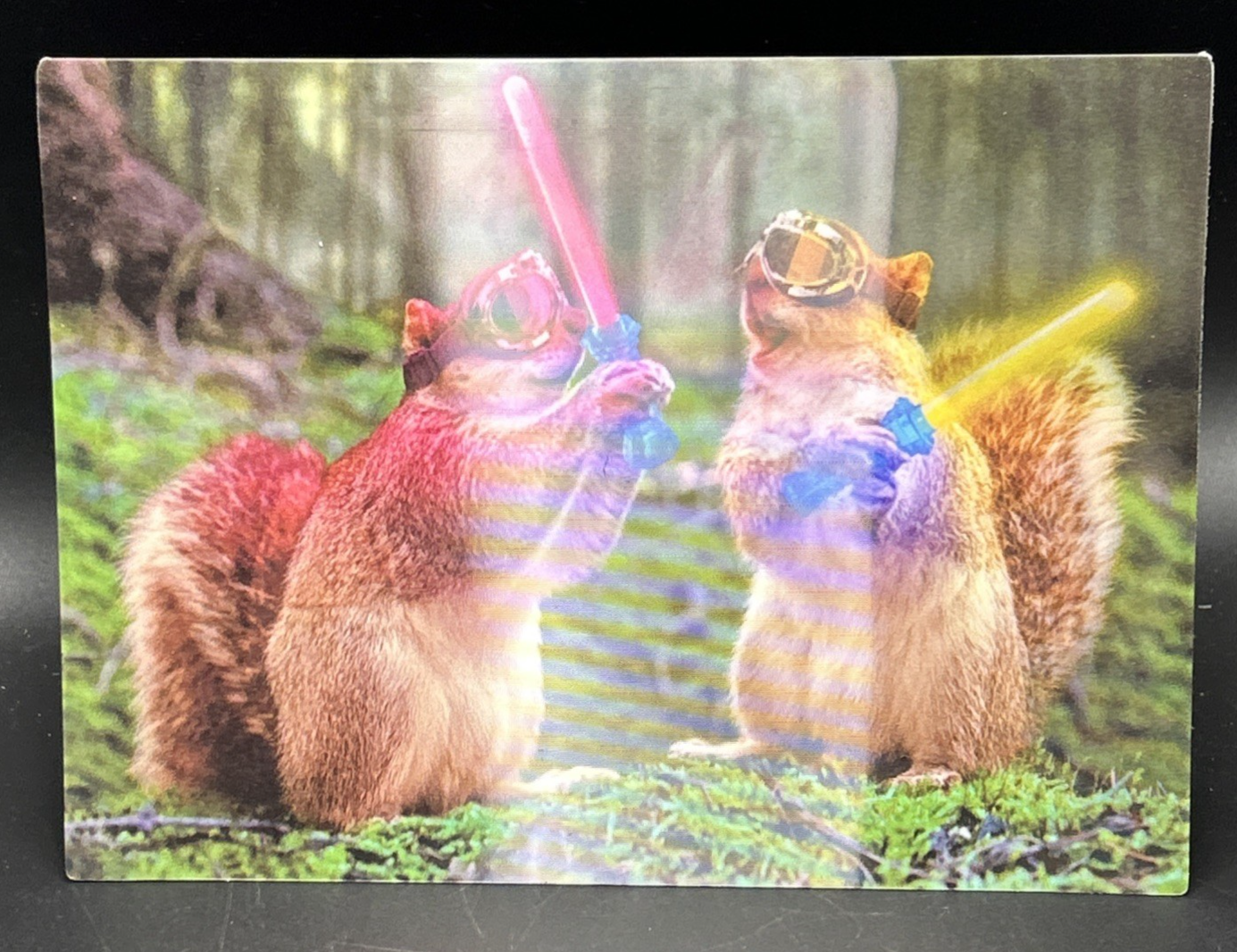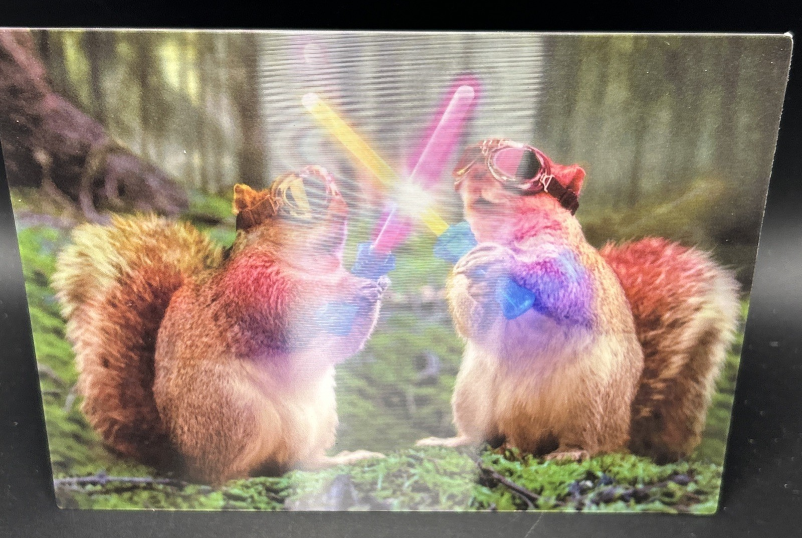 Happy Birthday (Squirrels Glow Stick) Hologram Greeting Card w/Envelope