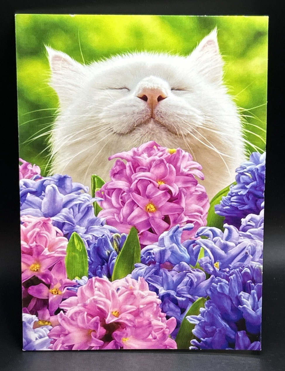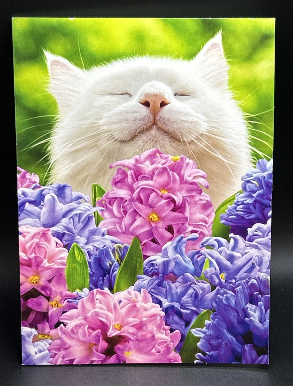 Happy Easter (Cat and Flowers) Greeting Card w/Envelope