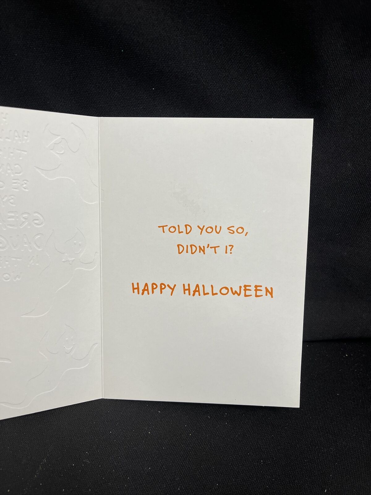 This Happy Halloween Daughter Greeting Card is the perfect way to celebrate the holiday with your loved ones. Featuring a festive design by Designer Greetings, this greeting card is ideal for simply wishing your daughter a Happy Halloween. The card comes with an envelope, making it easy to address and send to your special someone.
