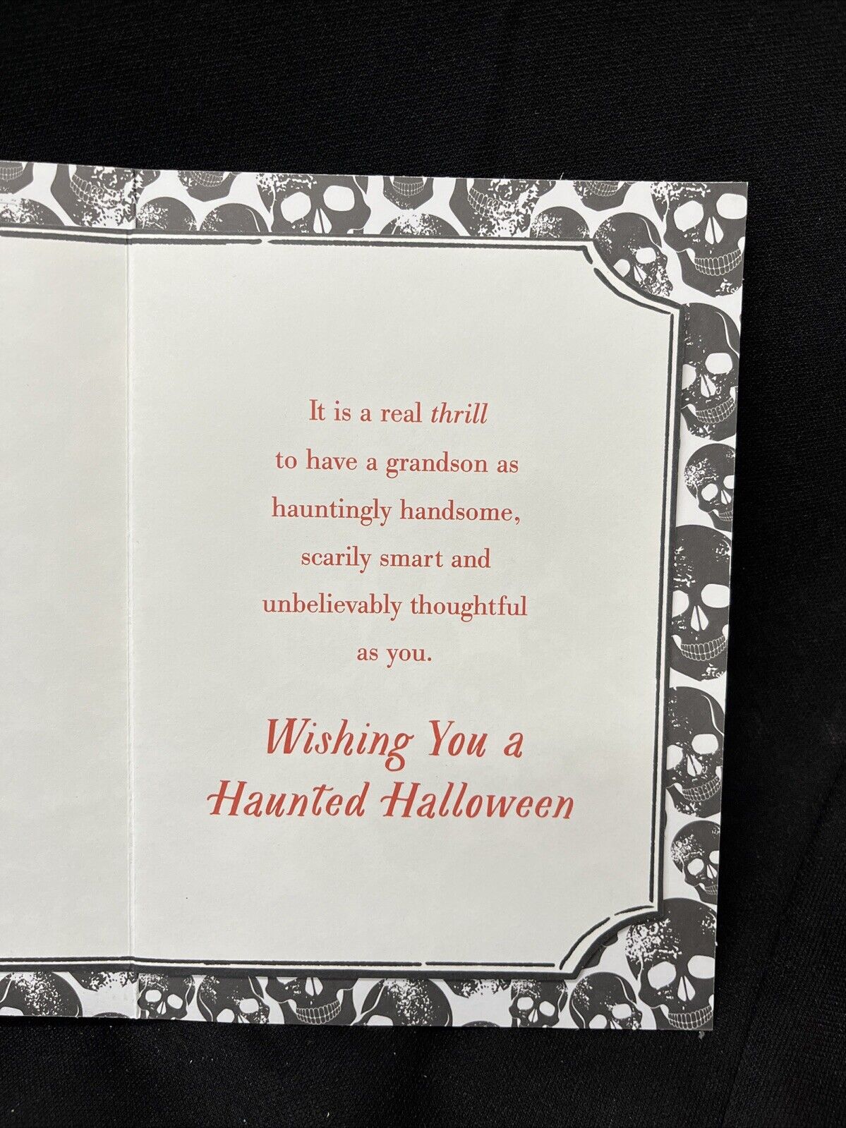 Whether you're sending the card to your grandson or simply want to add it to your collection, this greeting card is a must-have for any Halloween enthusiast. With its high-quality design and attention to detail, it's sure to become a cherished item in your collection. So why wait? Order now and send your grandson a happy Halloween greeting!