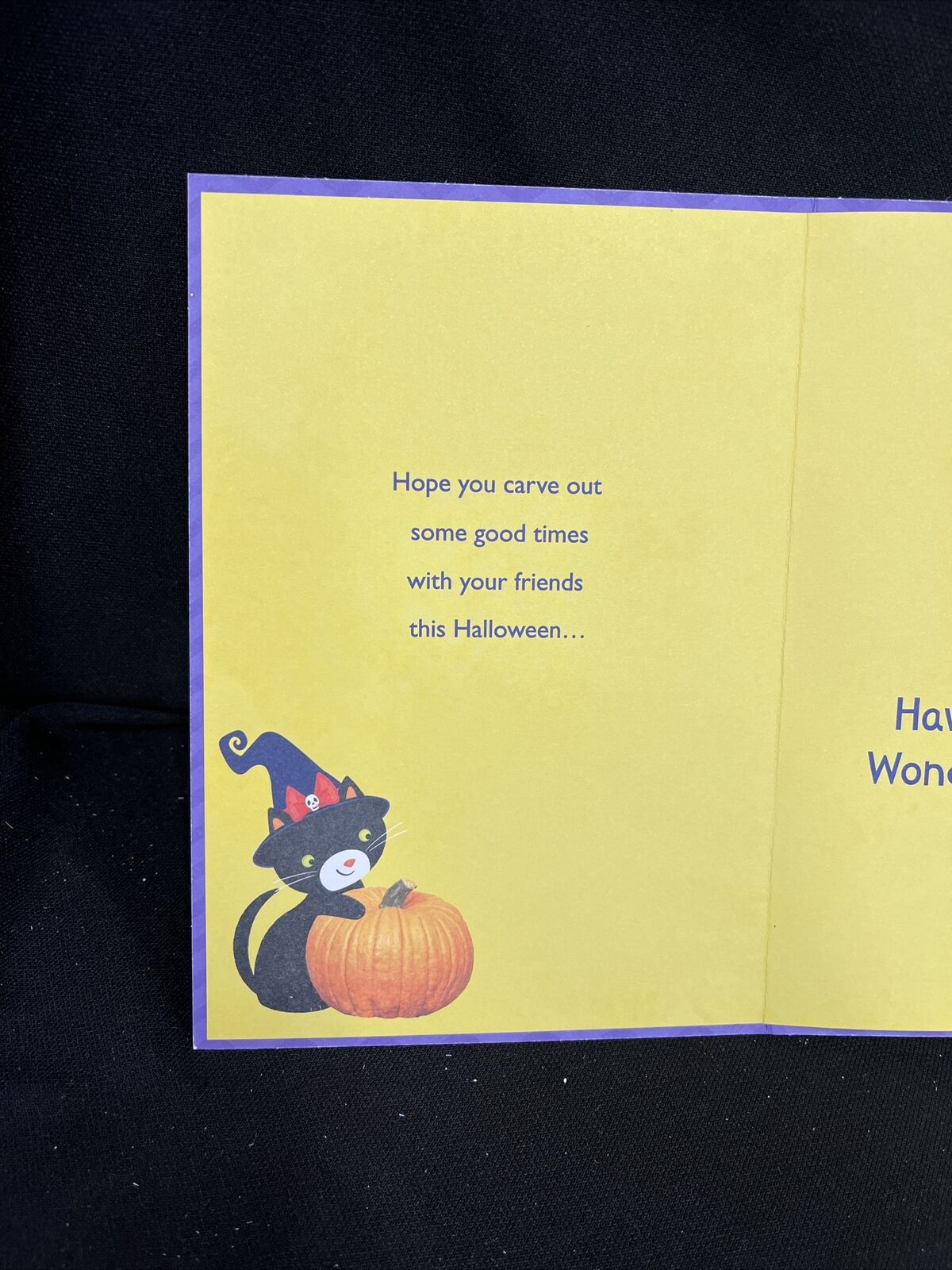 The card is ideal for girls and perfect for Halloween, making it a great addition to your Halloween decor. It's easy to use and will make the recipient feel happy and appreciated. So why wait? Get your hands on this Designer Greetings Happy Halloween card today and send a young girl a cheerful greeting that she'll love.