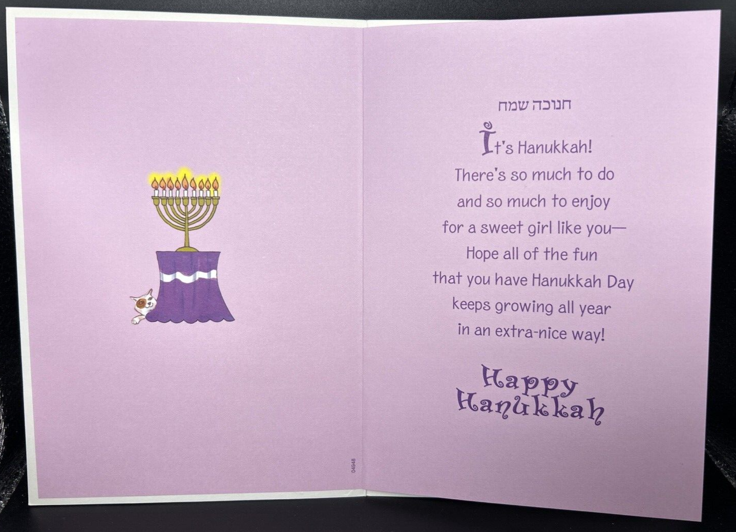 Celebrate the Festival of Lights with the "Happy Hanukkah (Girl)" Greeting Card from Designer Greetings. This beautifully crafted card is specifically designed to delight girls and convey warm wishes for a joyous Hanukkah celebration. It comes complete with a matching envelope, ensuring it's ready to be signed, sealed, and delivered to spread the spirit of the holiday.