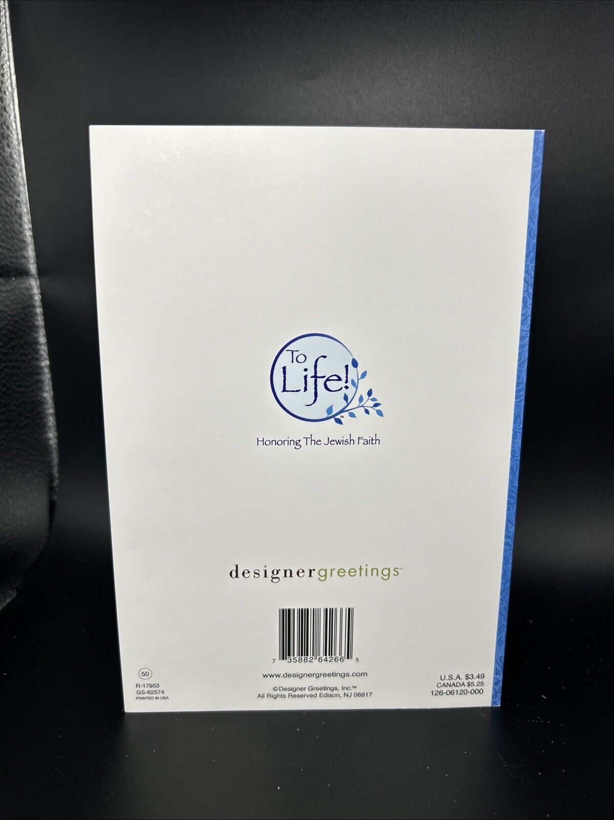 Celebrate the Festival of Lights with the "Happy Hanukkah Grandpa" Greeting Card from Designer Greetings. This card is perfect for sharing the joy and spirit of Hanukkah with a special grandpa. It features a beautifully designed exterior, complete with a matching envelope, ensuring your heartfelt message is delivered in style.