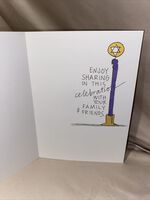 Happy Hanukkah Greeting Card w/Envelope NEW. Condition is "New". Outside: Happy Hanukkah Inside: Enjoy sharing in this celebration with your Family & Friends. NEW Ask about combined shipping on all greeting cards GC672