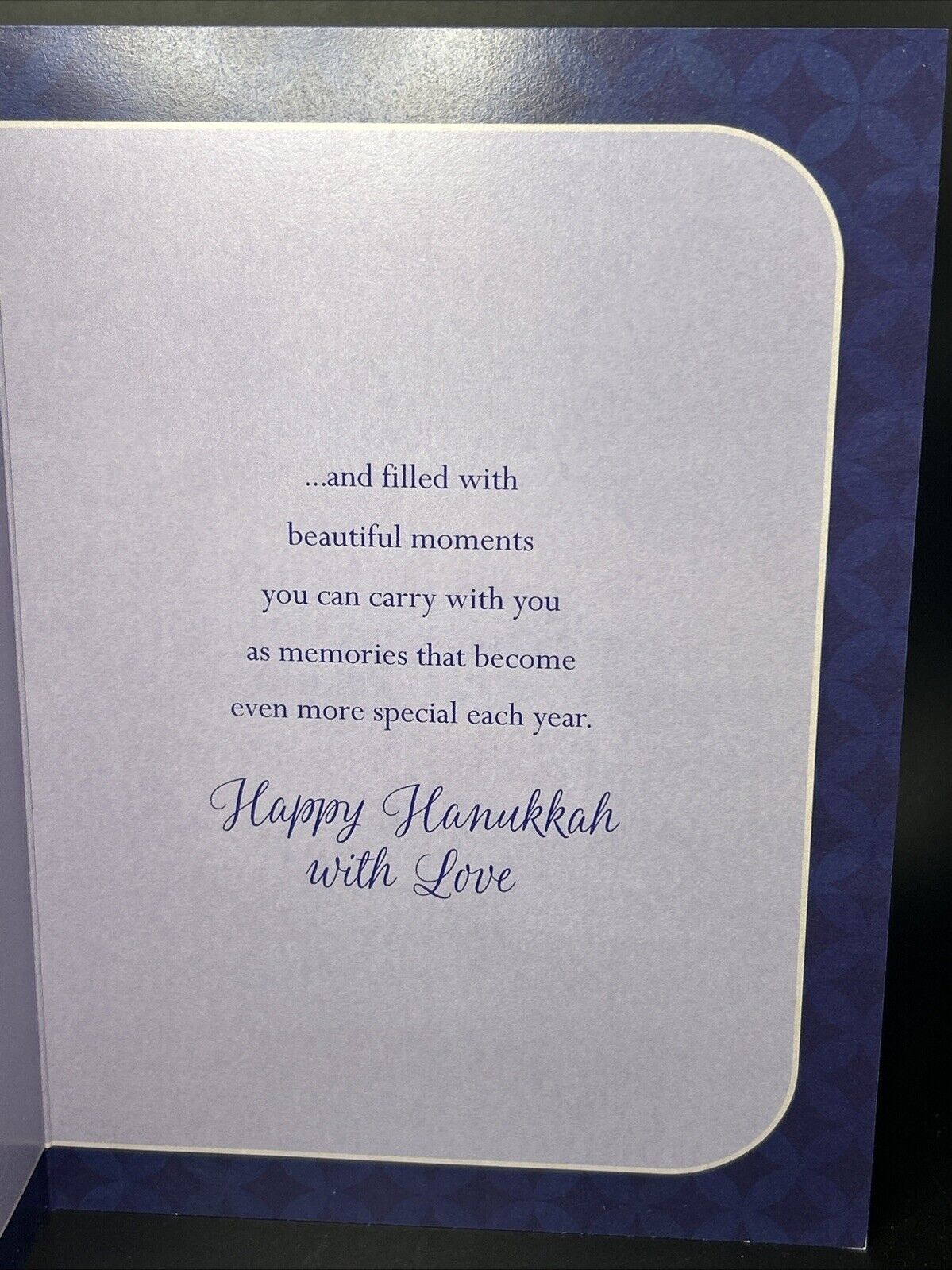 Inside, the card offers a warm, personalized greeting that speaks to the special relationship between parent and child, making it a memorable addition to any holiday celebration. With its thoughtful details and quality construction, this card is perfect for sharing the spirit of Hanukkah with those dearest to you.