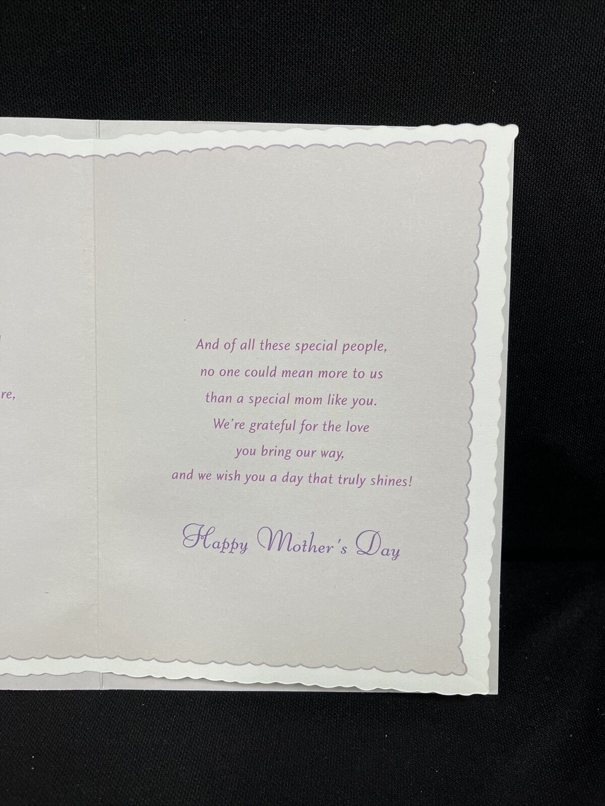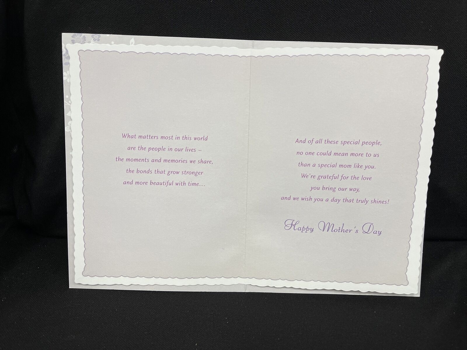 Celebrate the special bond between a mother and her daughter with this beautiful Designer Greetings greeting card. Perfect for Mother's Day, this card features a lovely message that expresses the love and gratitude of a daughter and her husband to their mom. The card comes with an envelope, making it easy to send and deliver your heartfelt message to your special recipient. Share the love with your mom and make her feel appreciated today!
