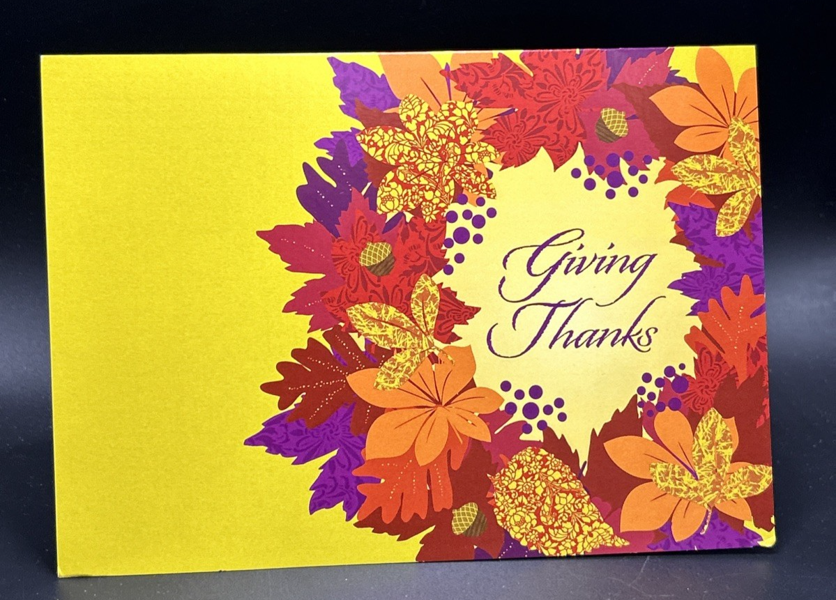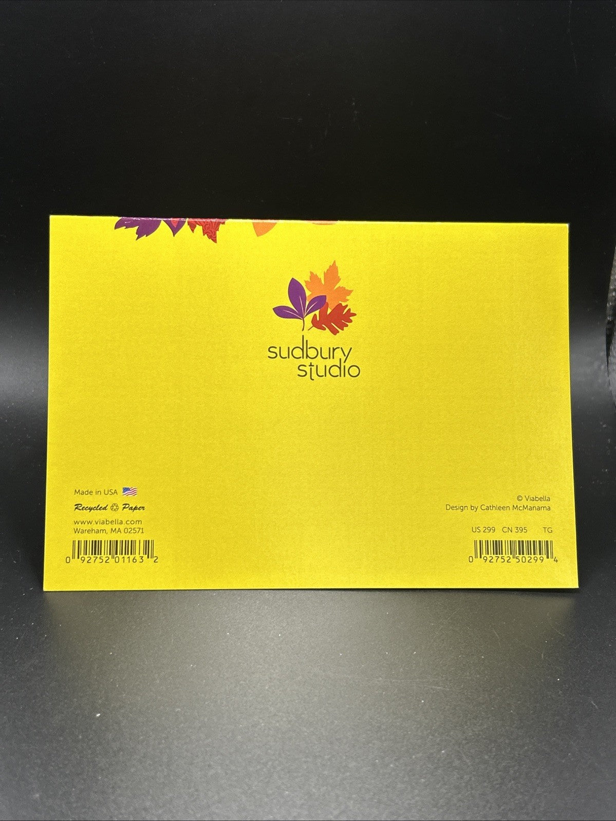 The Happy Thanksgiving Greeting Card by Sudbury Studio is a festive and charming way to send Thanksgiving wishes to friends and family. The card features a special design suitable for the occasion, with a comforting message to express gratitude and joy during the holiday season. Complete with an envelope, this greeting card allows for easy gifting and sharing of warm wishes on Thanksgiving.